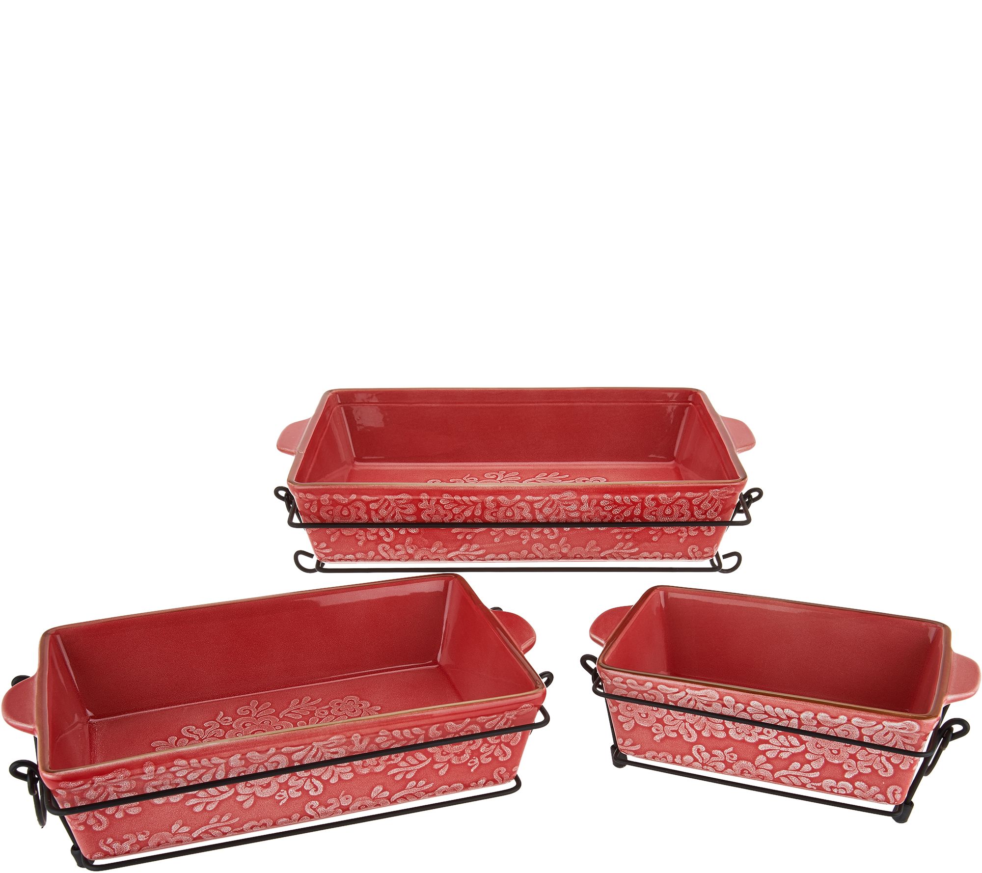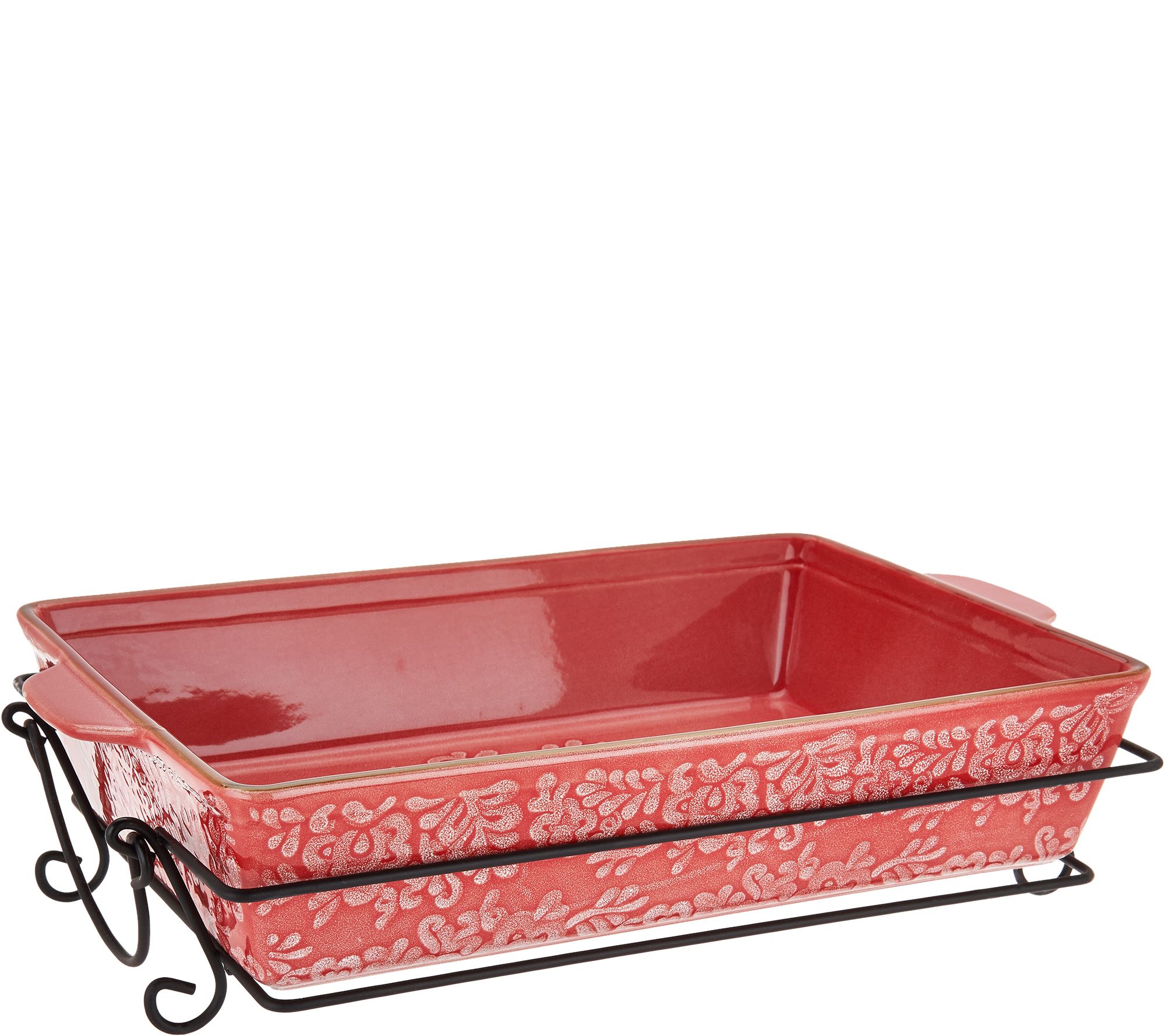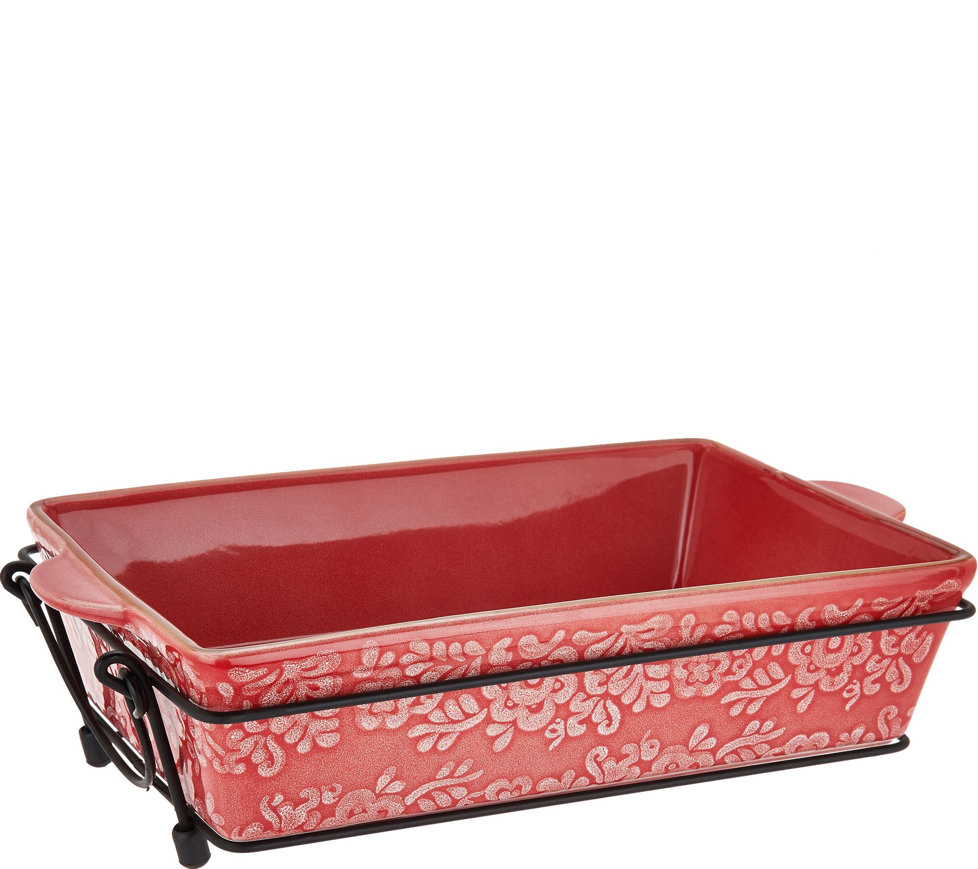 Beautifully decorated inside and out, this ceramic baker and rack trio brings effortless entertaining from the oven to the table. From Cook's Essentials(R) Kitchenware.