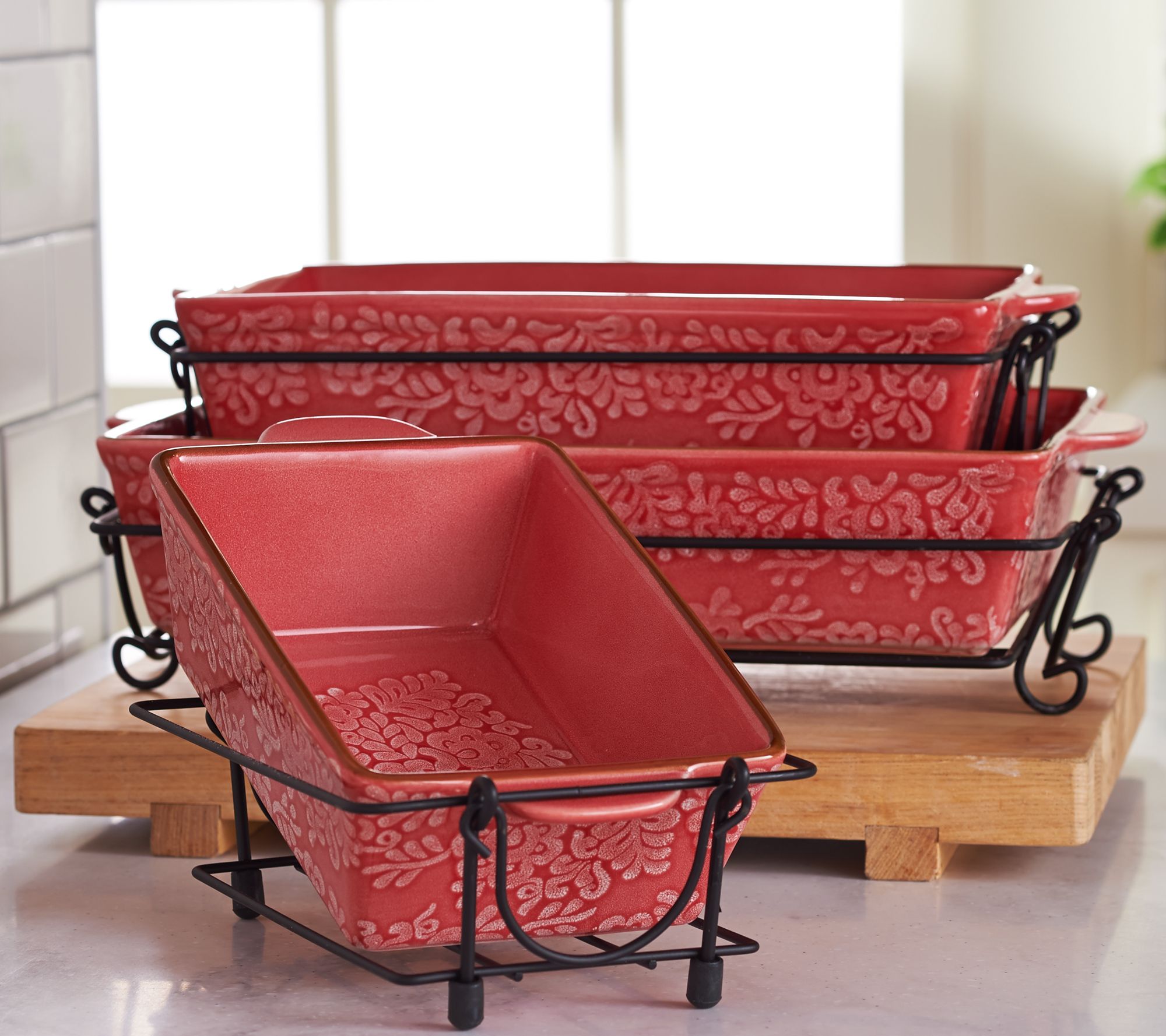 Includes 1.5-qt baker with wire rack, one 2.5-qt baker with wire rack, and 3.5-qt baker with wire rack