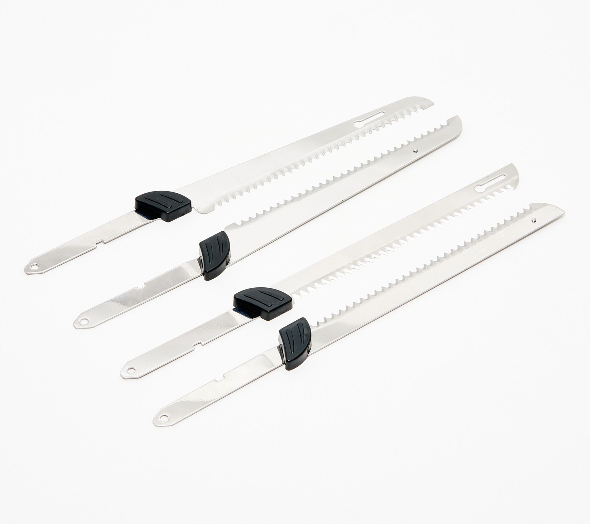 • Includes rechargeable cordless knife, two stainless steel blades, plastic case, and power adapter