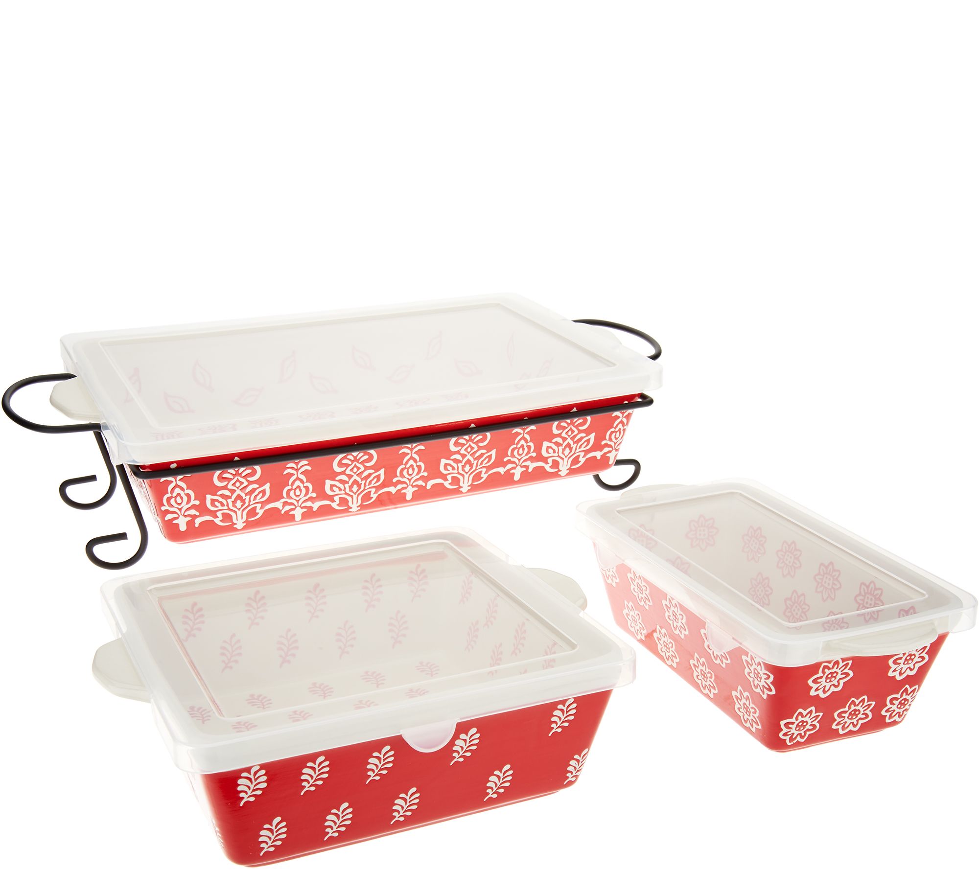 • Includes large baker with storage lid and black wire holder, medium baker with storage lid, and small baker with storage lid