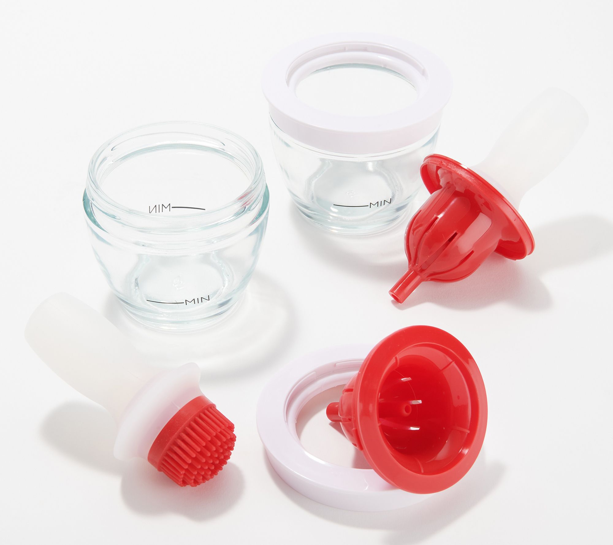 Keep meats moisturized whether you are barbecuing, basting, or baking with this set of silicone brushes and coordinating glass containers. From Cook's Essentials.