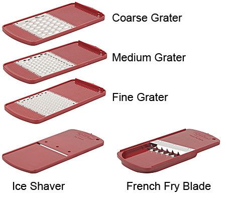 Choose from nine blades for every task. Shave ice for frosty drinks, produce julienne slices for salads and sides, grate cheese and veggies for toppings--even make French fries with the new customer-requested French-fry blade.