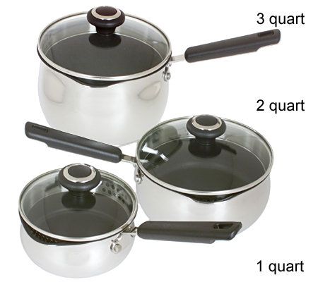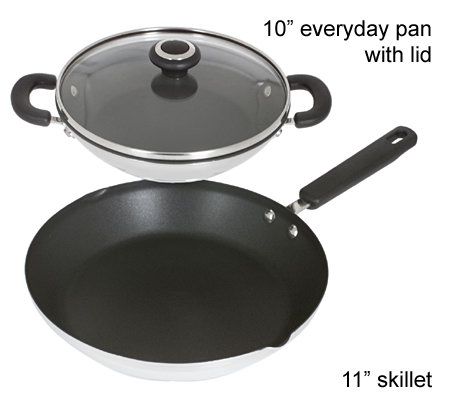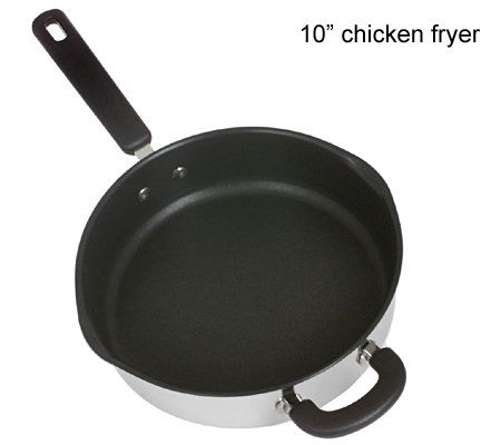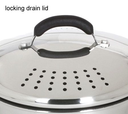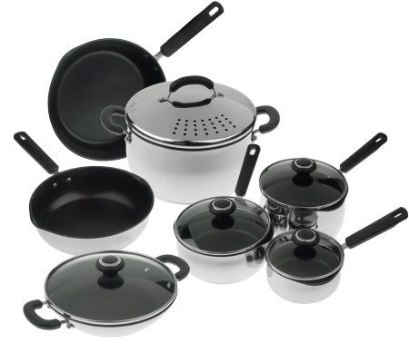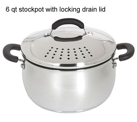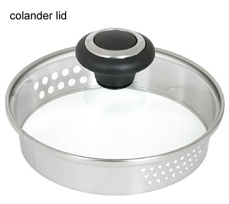 Includes 1-qt saucepan with colander lid; 2-qt saucepan with colander lid; 3-qt saucepan with colander lid; 6-qt stockpot with locking drain lid; 10" 2-3/4-qt open chicken fryer with helper handle; 11" open skillet; 10" everyday pan; and lid for everyday pan and stockpot