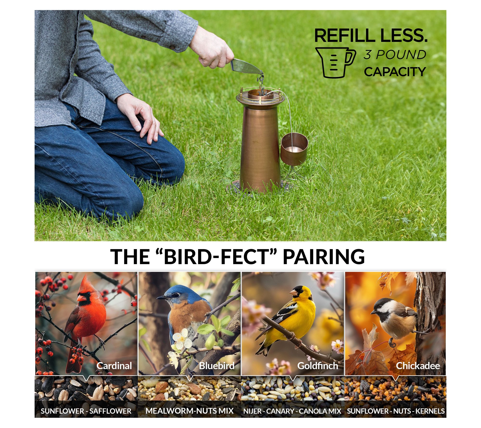 Transform your garden into a nautical retreat with the Lighthouse Copper Bird Feeder from Good Directions. Its copper and brass construction adds a touch of coastal charm to any backyard while offering your feathered friends a reliable dining spot. The easy-to-lift top makes refilling a breeze, and the drainage holes help the seeds stay dry, keeping your bird visitors happy. From Good Directions.