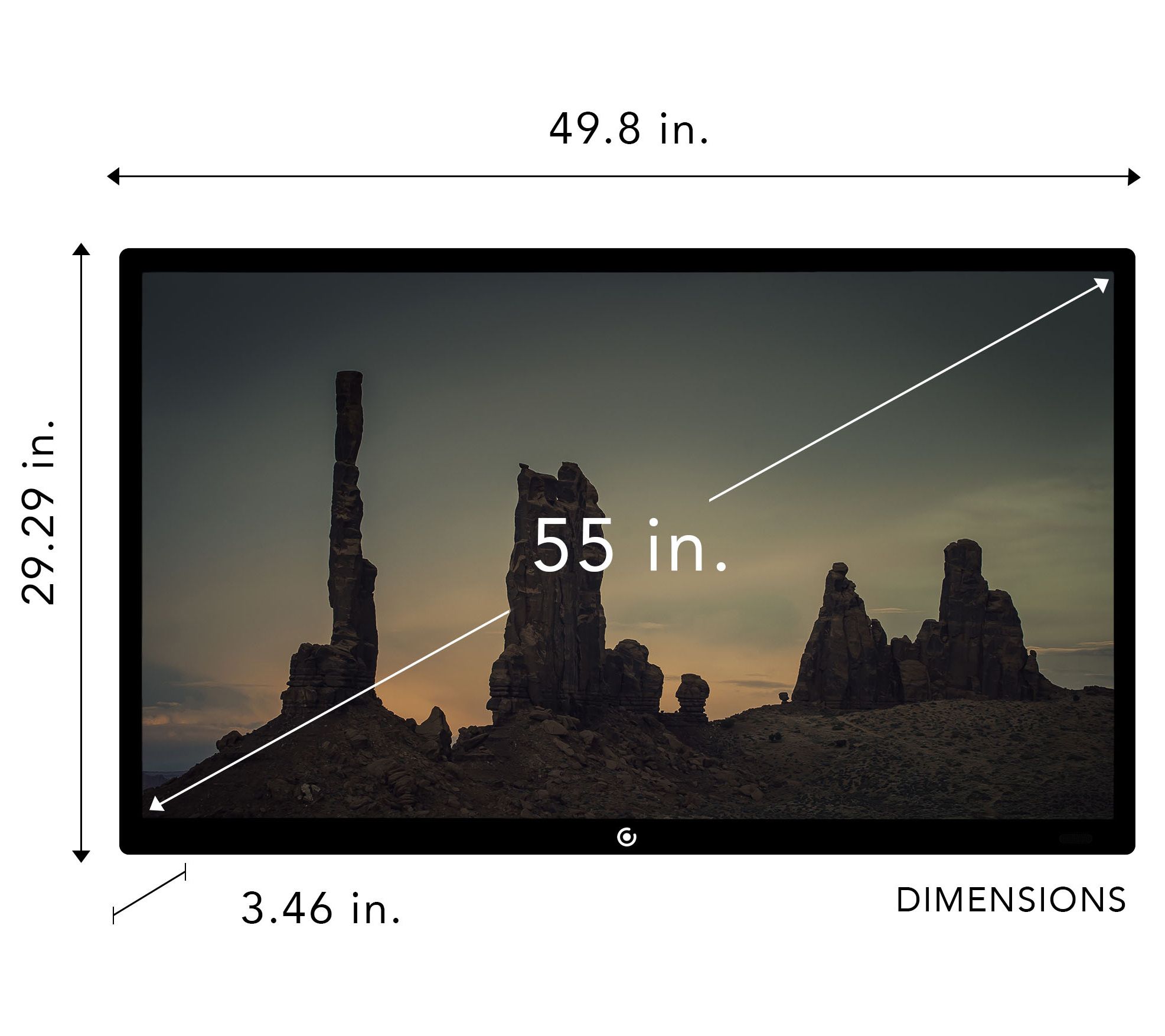 • Measures 49.8"W x 29.3"H x 3.46"D; weighs 54.2 lbs