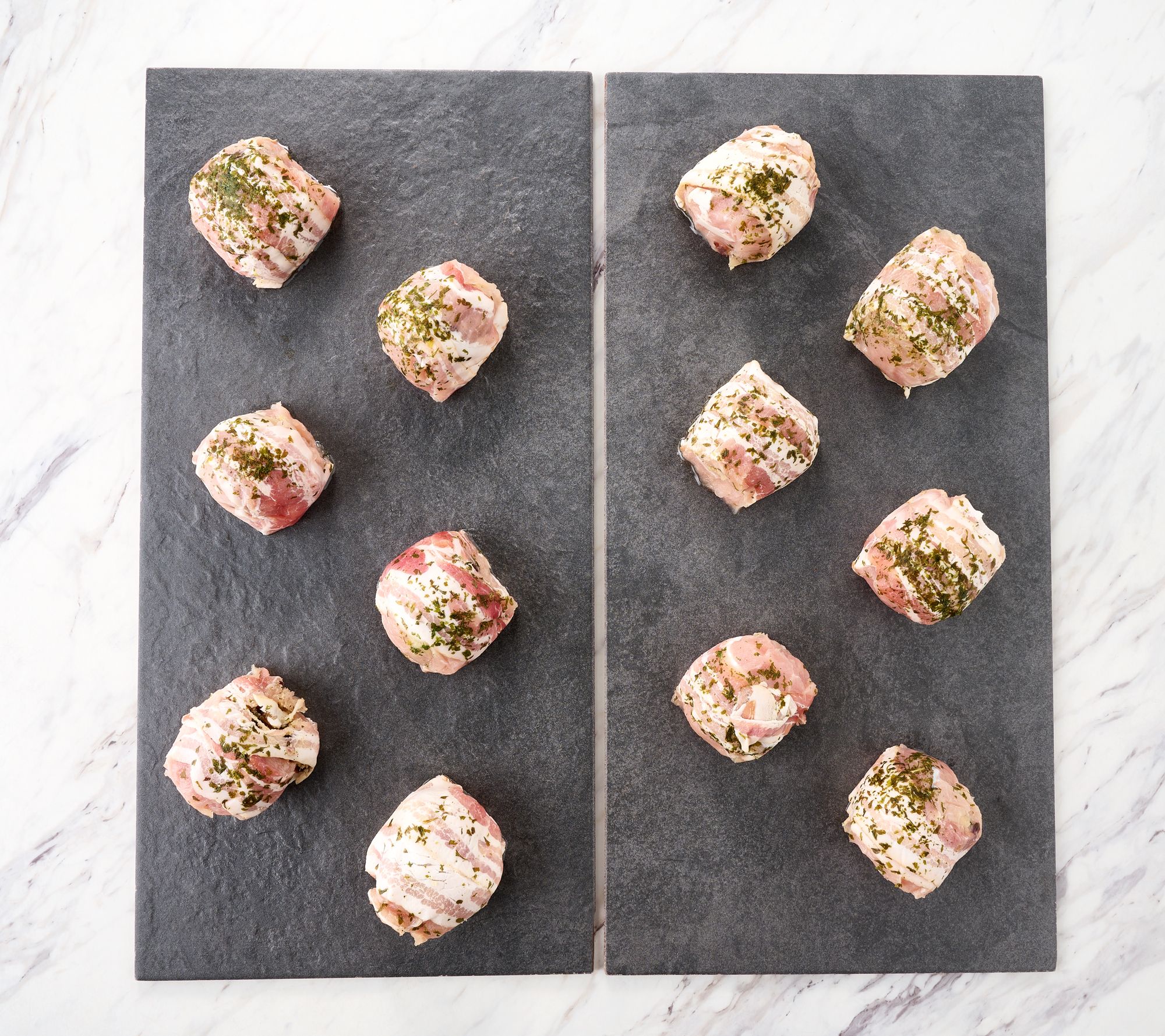 Turkey breasts with cranberry breadcrumb stuffing and wrapped in smoked bacon