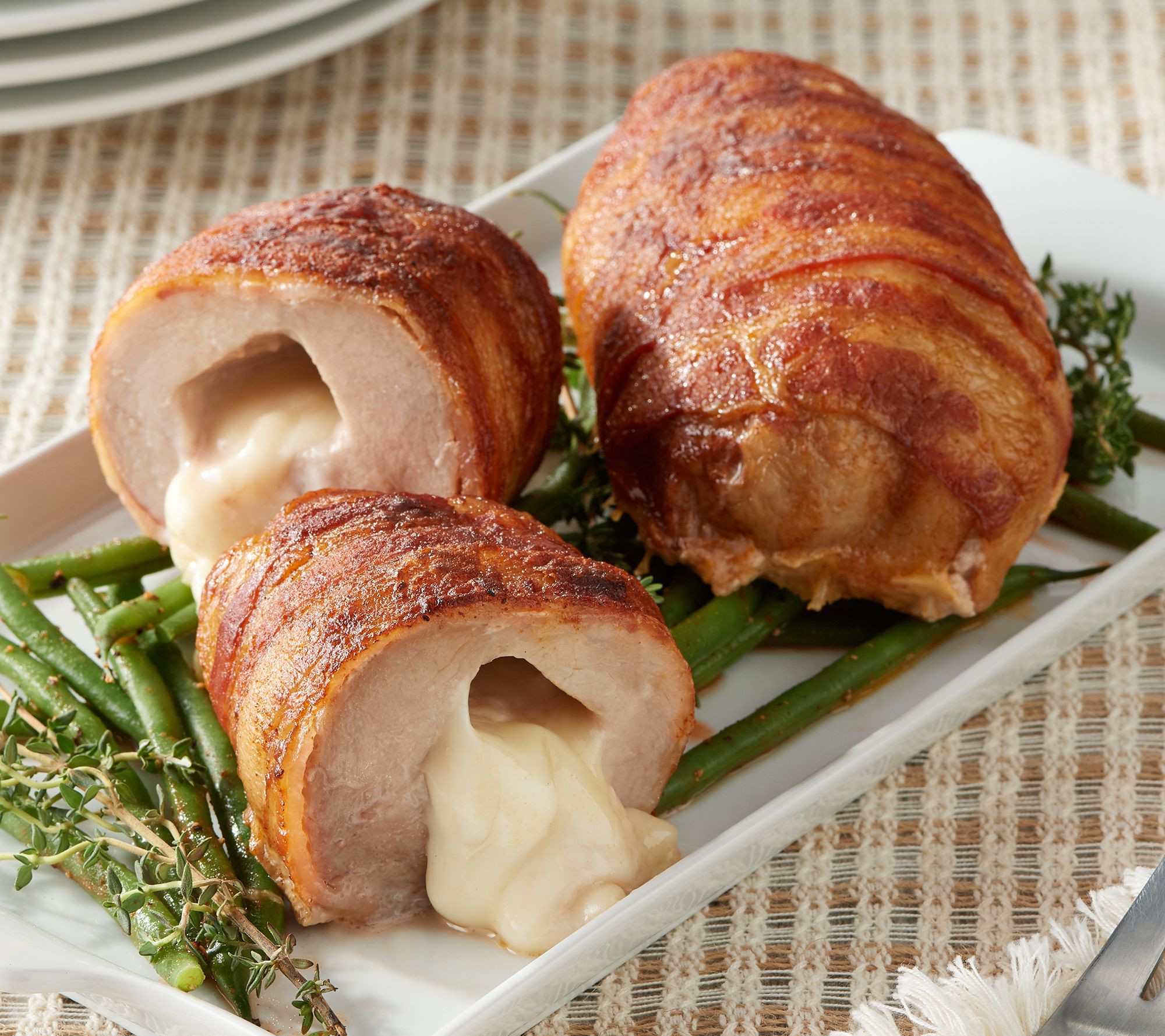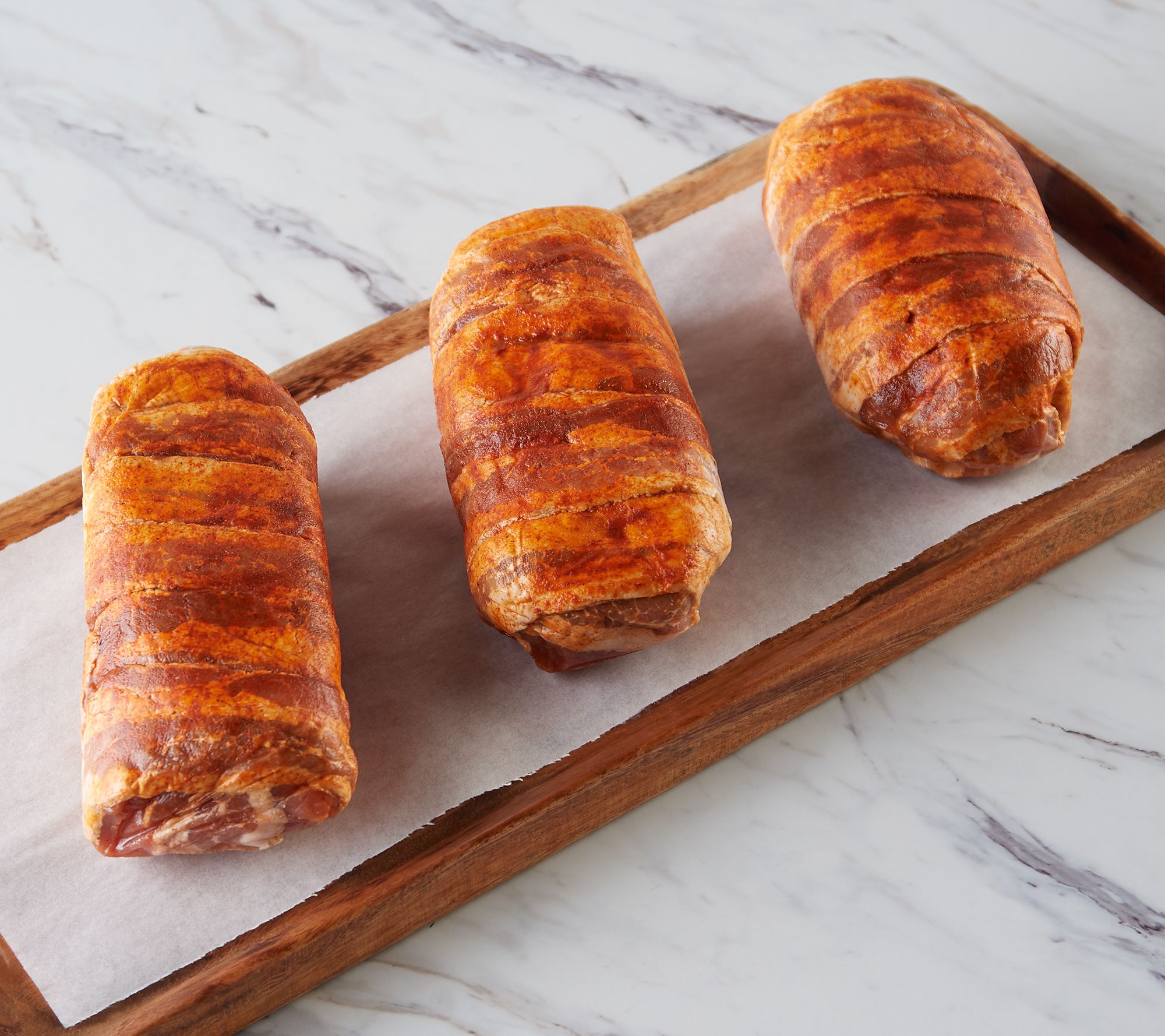 • Includes three 1-lb packages of Monterey Jack cheese-stuffed, bacon-wrapped BBQ pork tenderloins