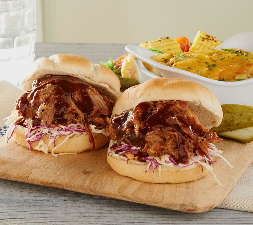 • Slow-cooked, rubbed, seasoned, then basted with your choice of sauce