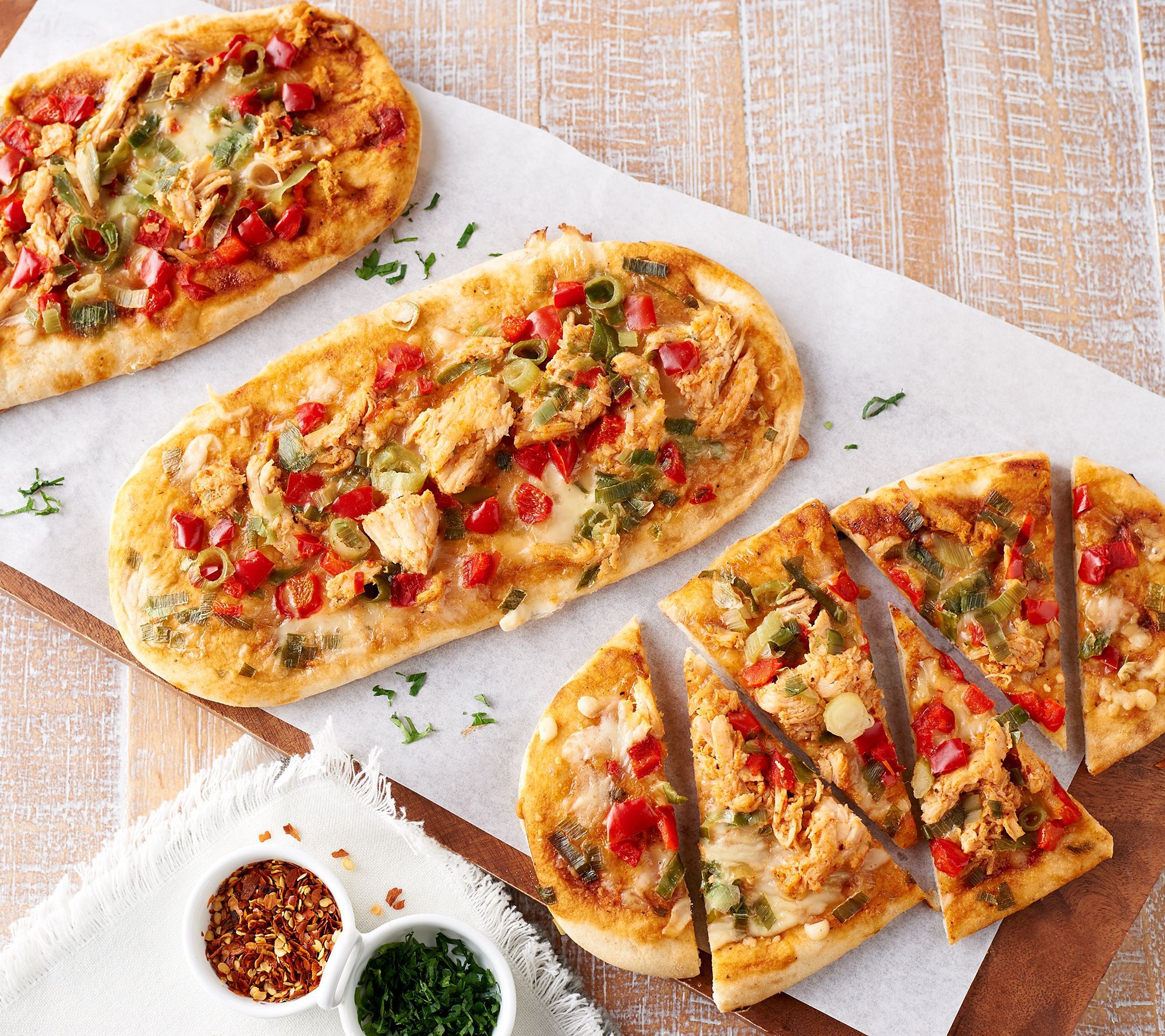 Give the (home) chef a night off! These full-of-flavor flatbreads are ready in minutes to satisfy the whole fam. Tangy BBQ pulled pork or chicken anchor these crusty flatbread pizzas topped with Corky's Original sauce, cheese, red bell peppers, and onions for a tasty meal that's better than takeout. From Corky's Ribs & BBQ.