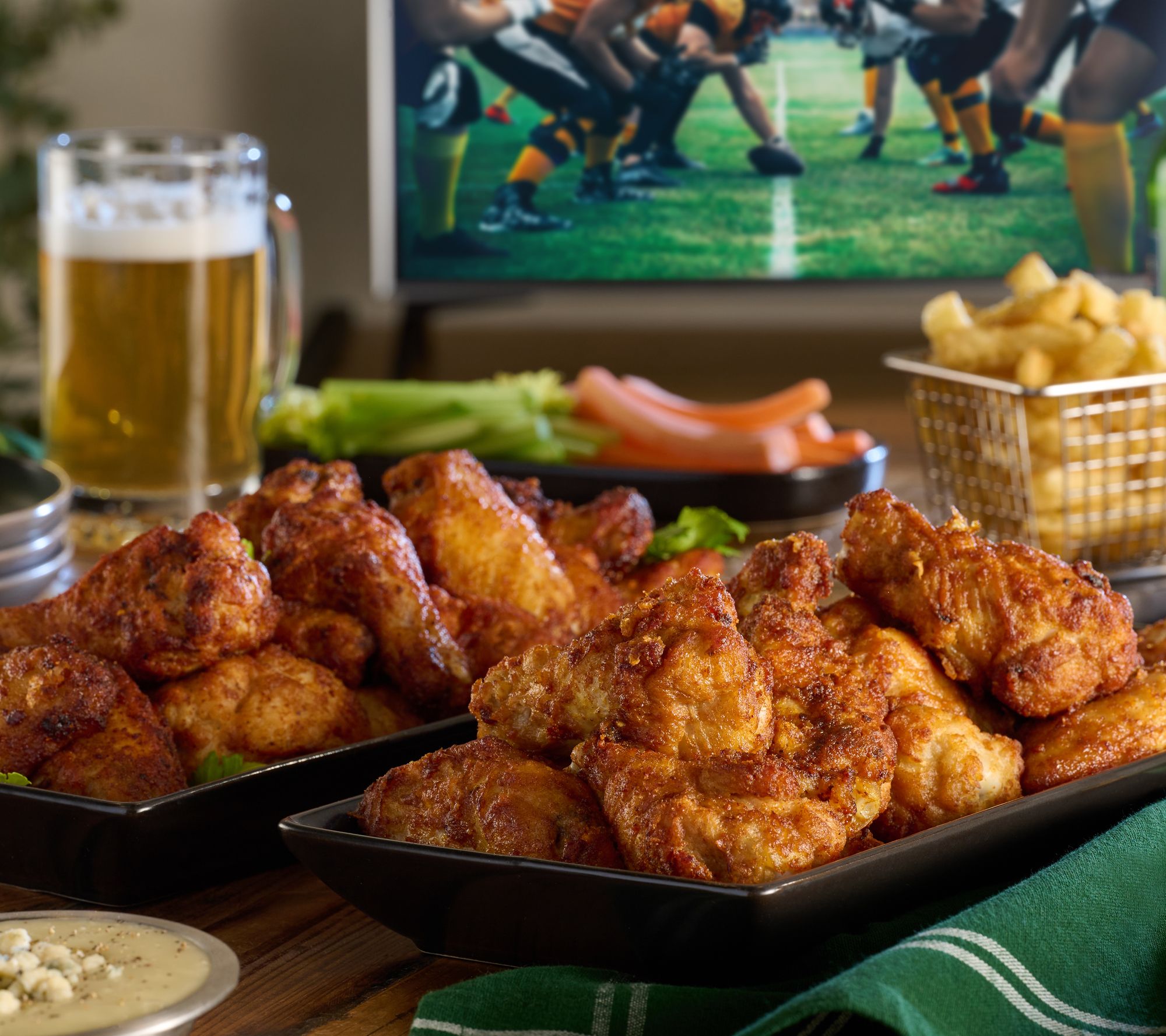 Slow roasted (yum!) and pre-seasoned to perfection (did we already say yum?), these juicy and flavorful wings arrive pre-cooked. All you have to do is heat, eat, and enjoy! And that means more time to hang out with your favorite fans.