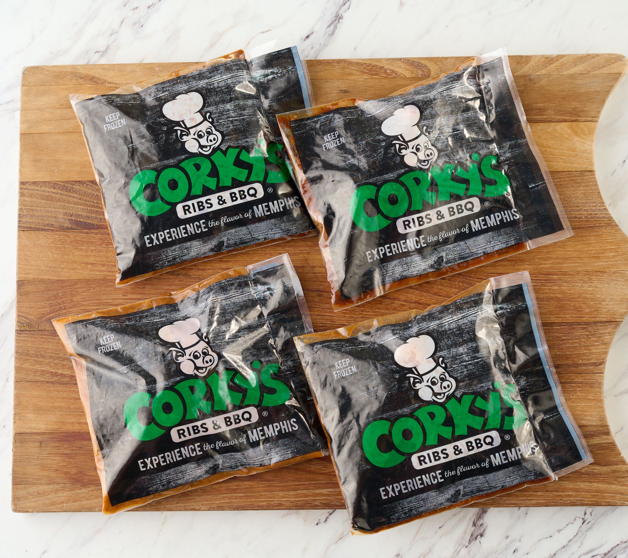 • Slow-smoked and slather in Corky's Original BBQ sauce