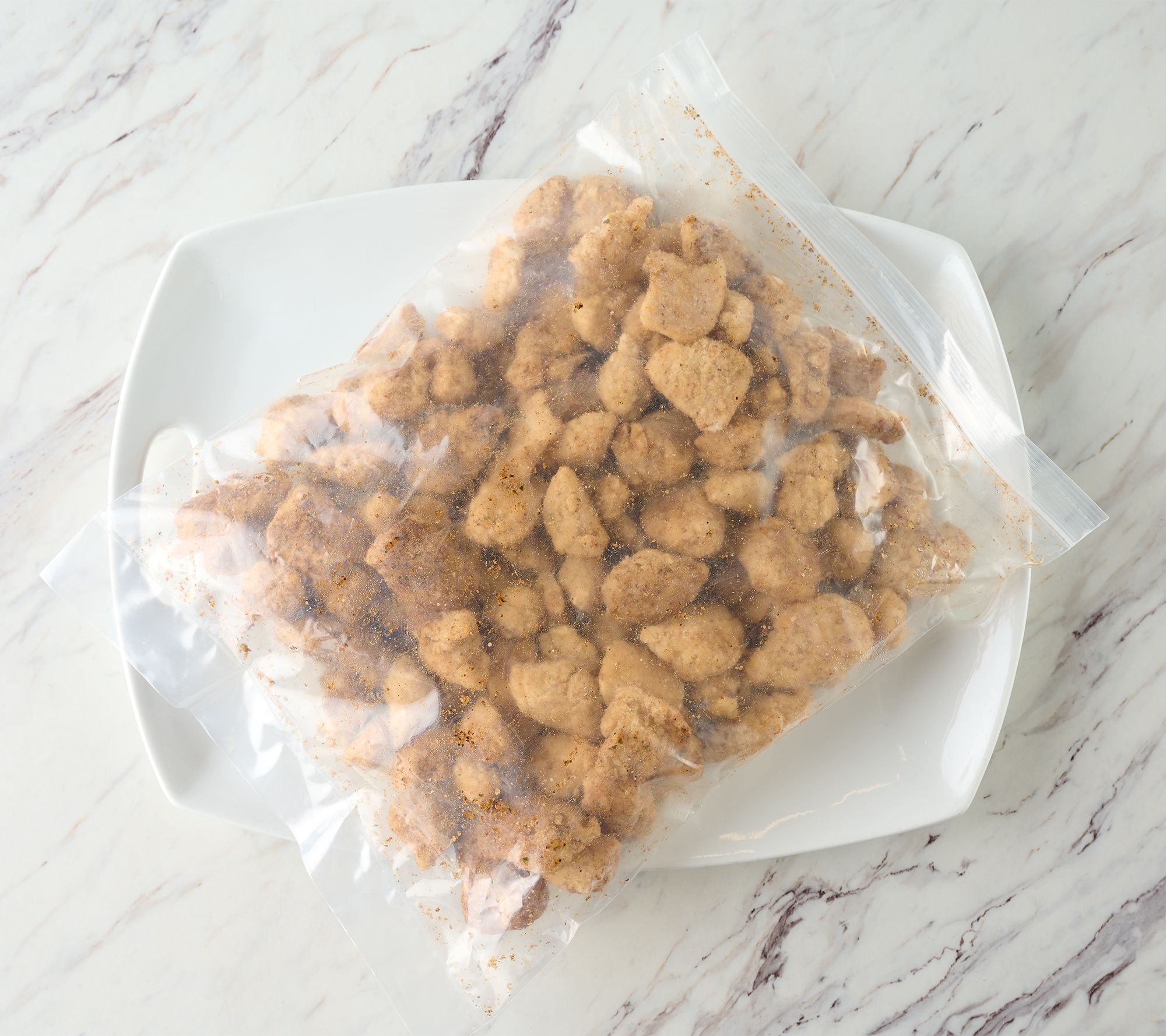 • Includes 4-lb resealable bag of breaded popcorn chicken with choice of seasoning