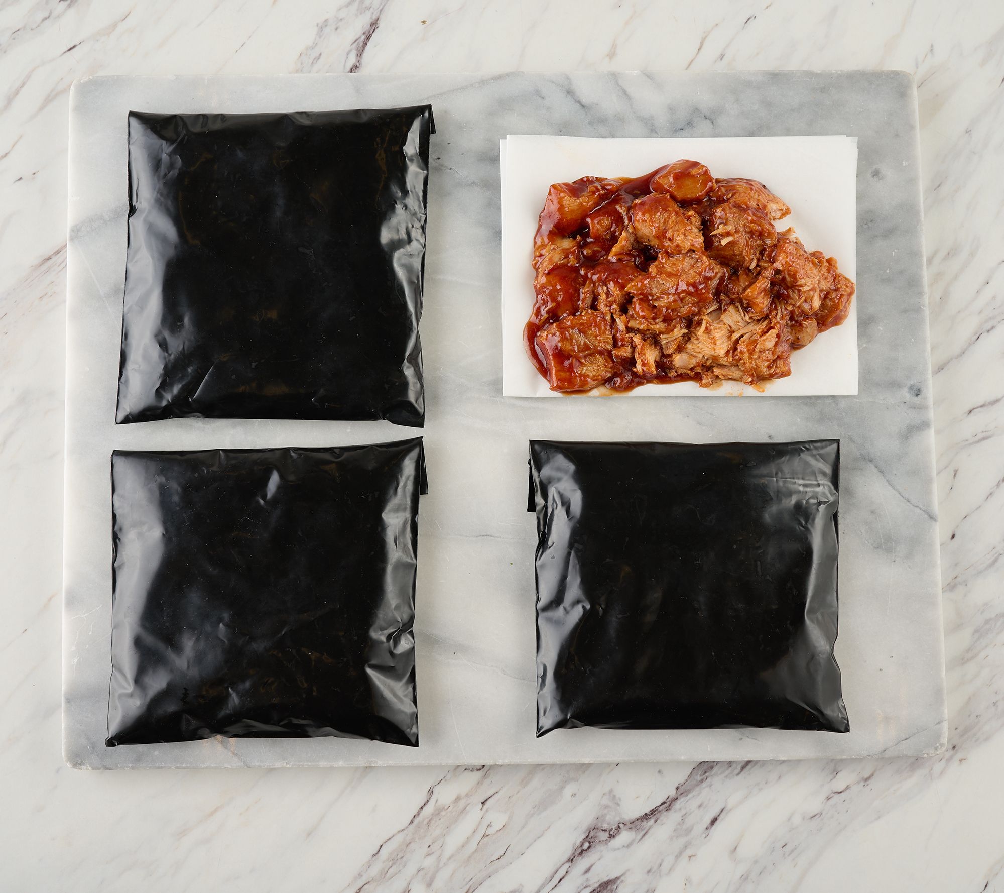 Includes four 1-lb bags of smoked turkey burnt ends in honey BBQ sauce