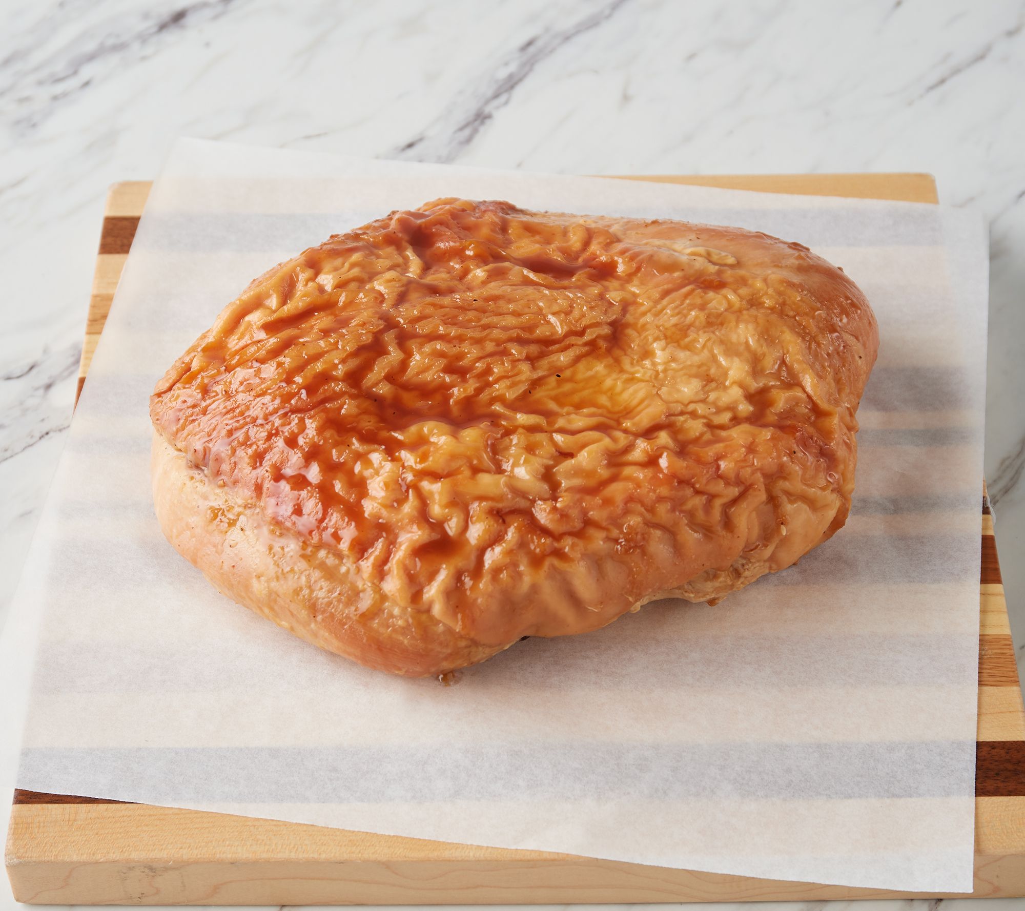 Includes 5-lb boneless ham or turkey breast with a honey brown sugar glaze