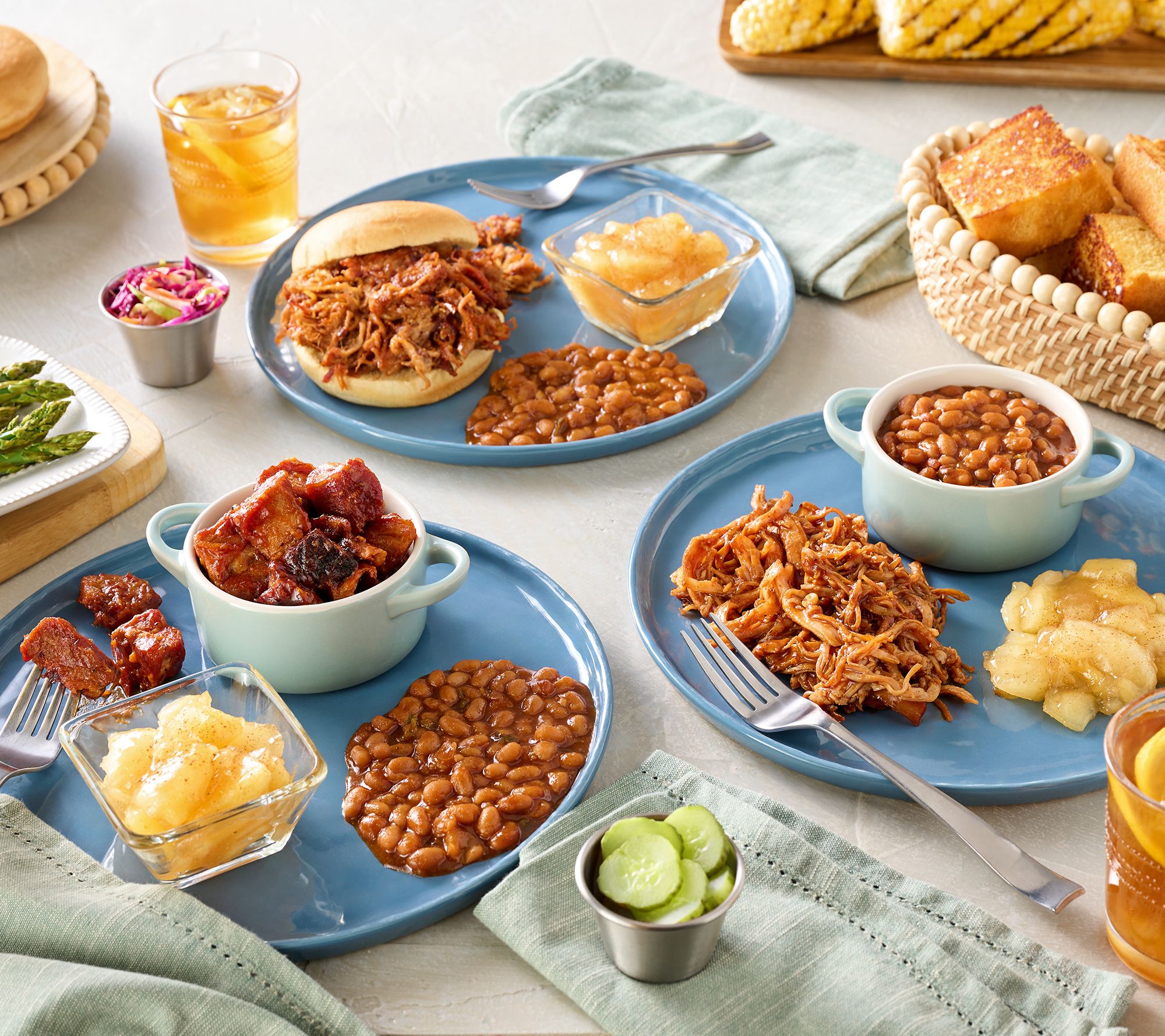 Includes six heat-and-eat BBQ dinners with baked beans and baked apples