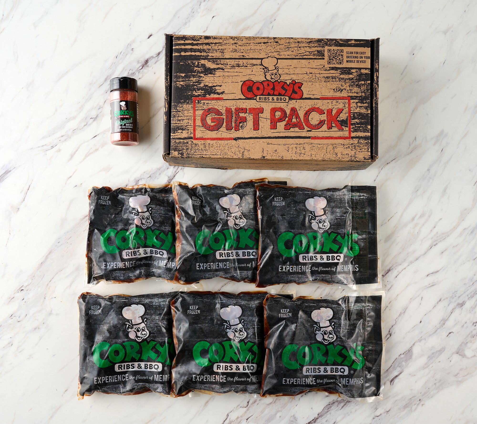 Whether you're hosting a casual cookout or craving something special for dinner, these pork burnt ends deliver smoky flavor in every bite. Seasoned with Corky's Original BBQ Sauce and dry rub, each piece offers tender texture and rich taste with simple heat-and-serve prep. The festive gift box makes it a fun choice for sharing or surprising a fellow barbecue fan. From Corky's Ribs & BBQ.