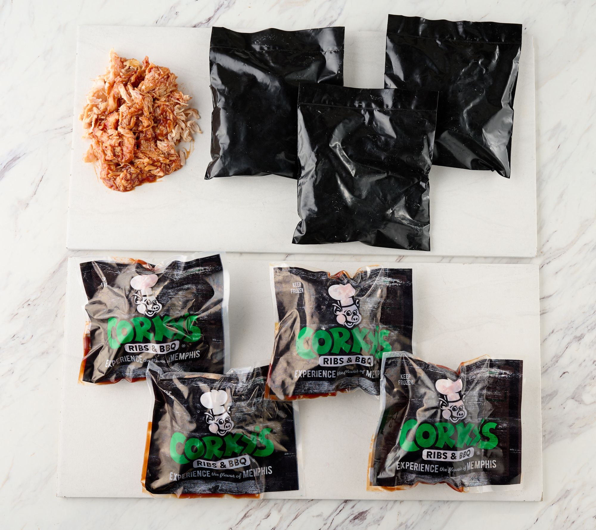 • Slow-smoked and slathered in Corky's honey BBQ sauce