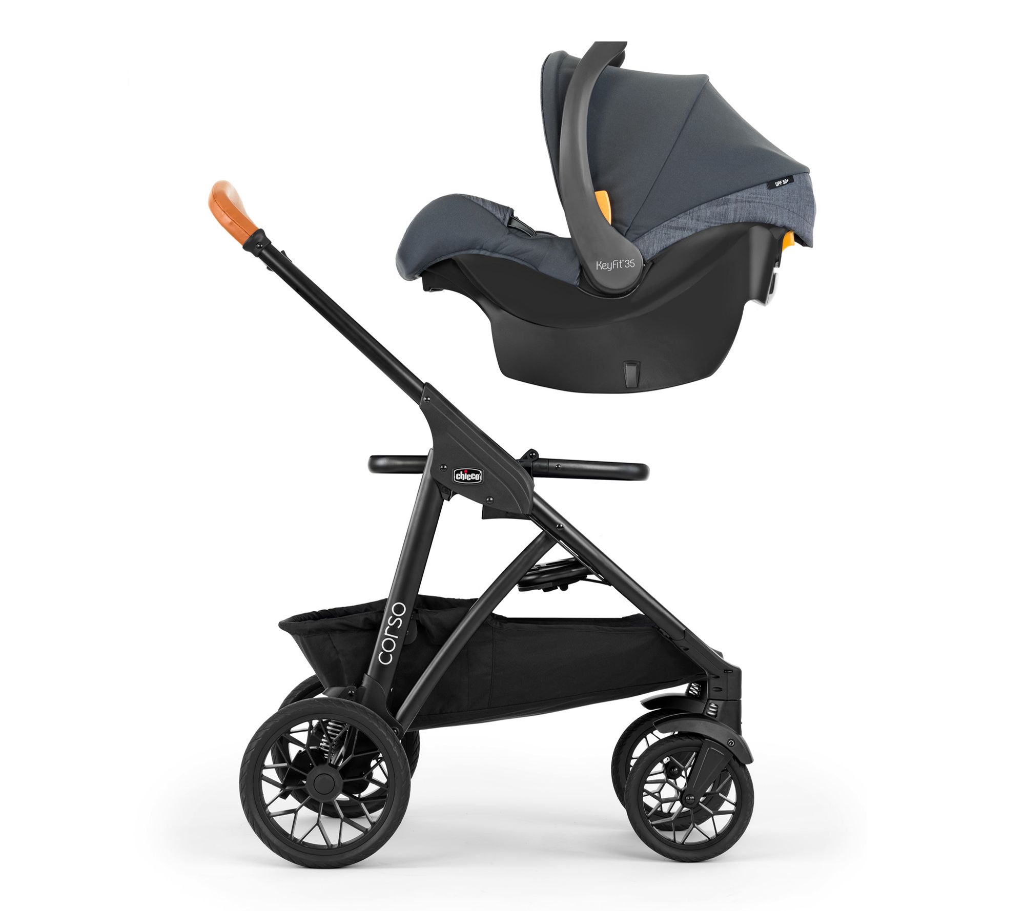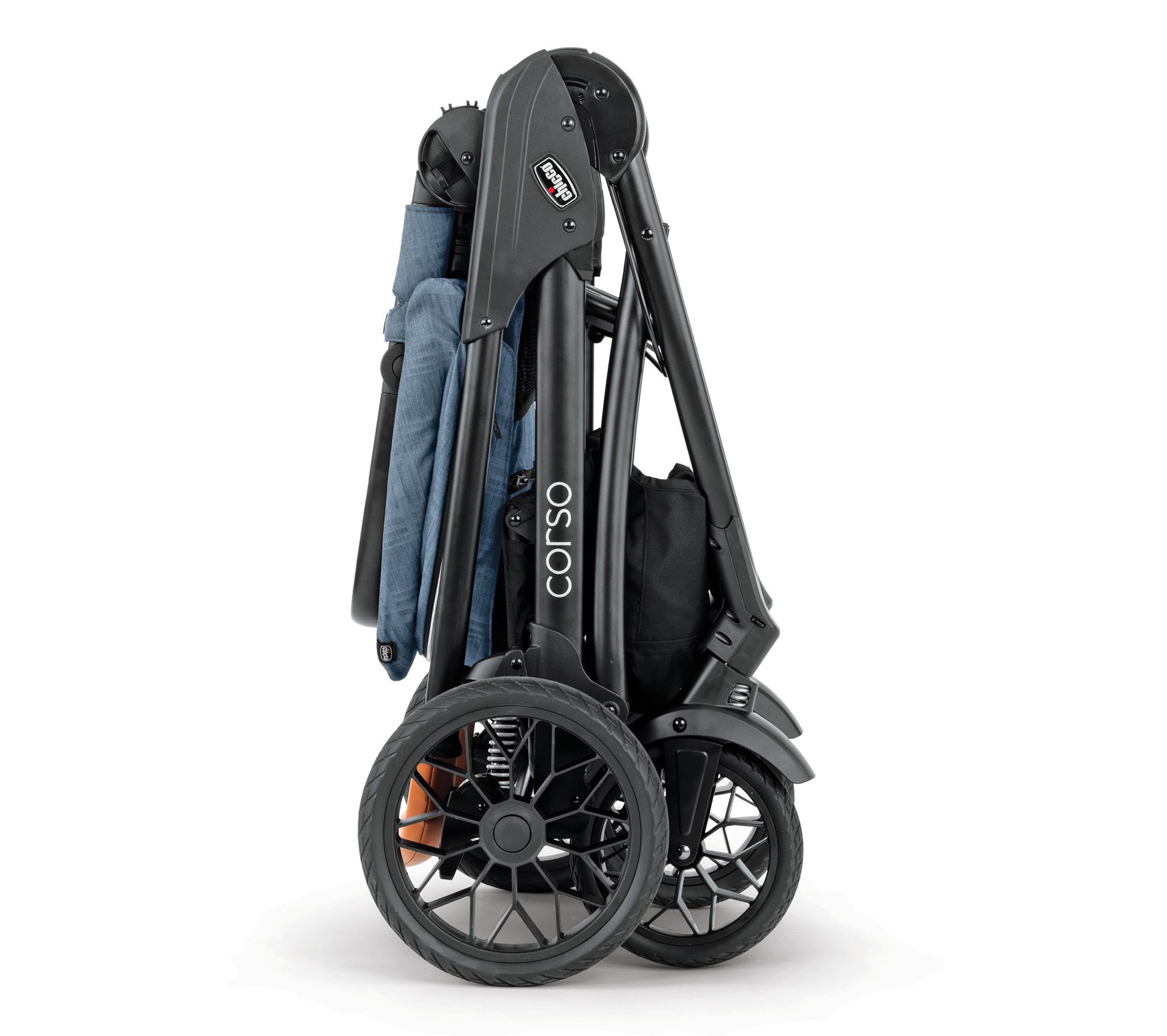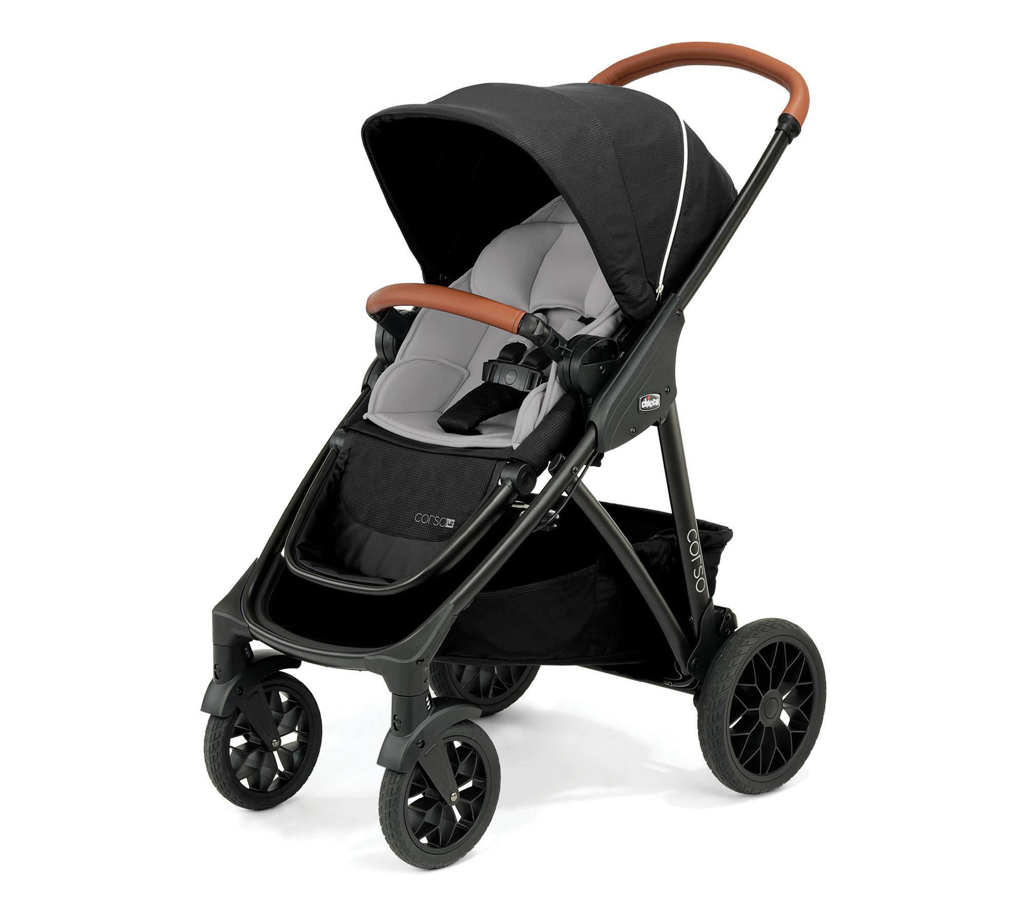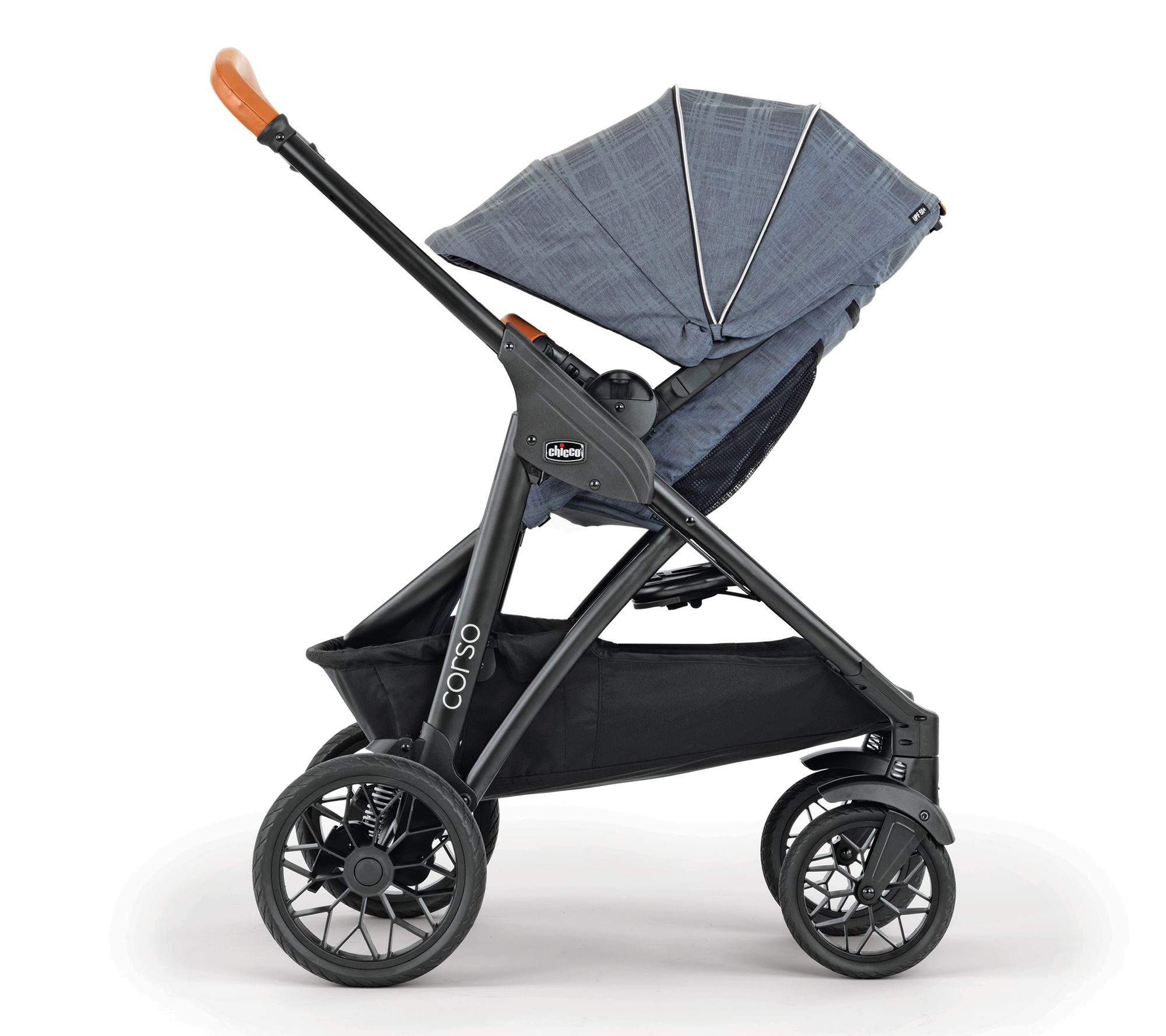 Featuring premium details, the versatile Chicco Corso LE Modular Quick-Fold Stroller offers adaptable parent-facing and forward-facing modes to fit your little one's ever-changing needs. Perfect for day-one convenience, it includes a newborn-friendly insert and an infant car seat adapter. This stroller ensures comfort and luxury with its multi-position reclining seat, adjustable footrest, and extra-large storage basket. From Chicco.