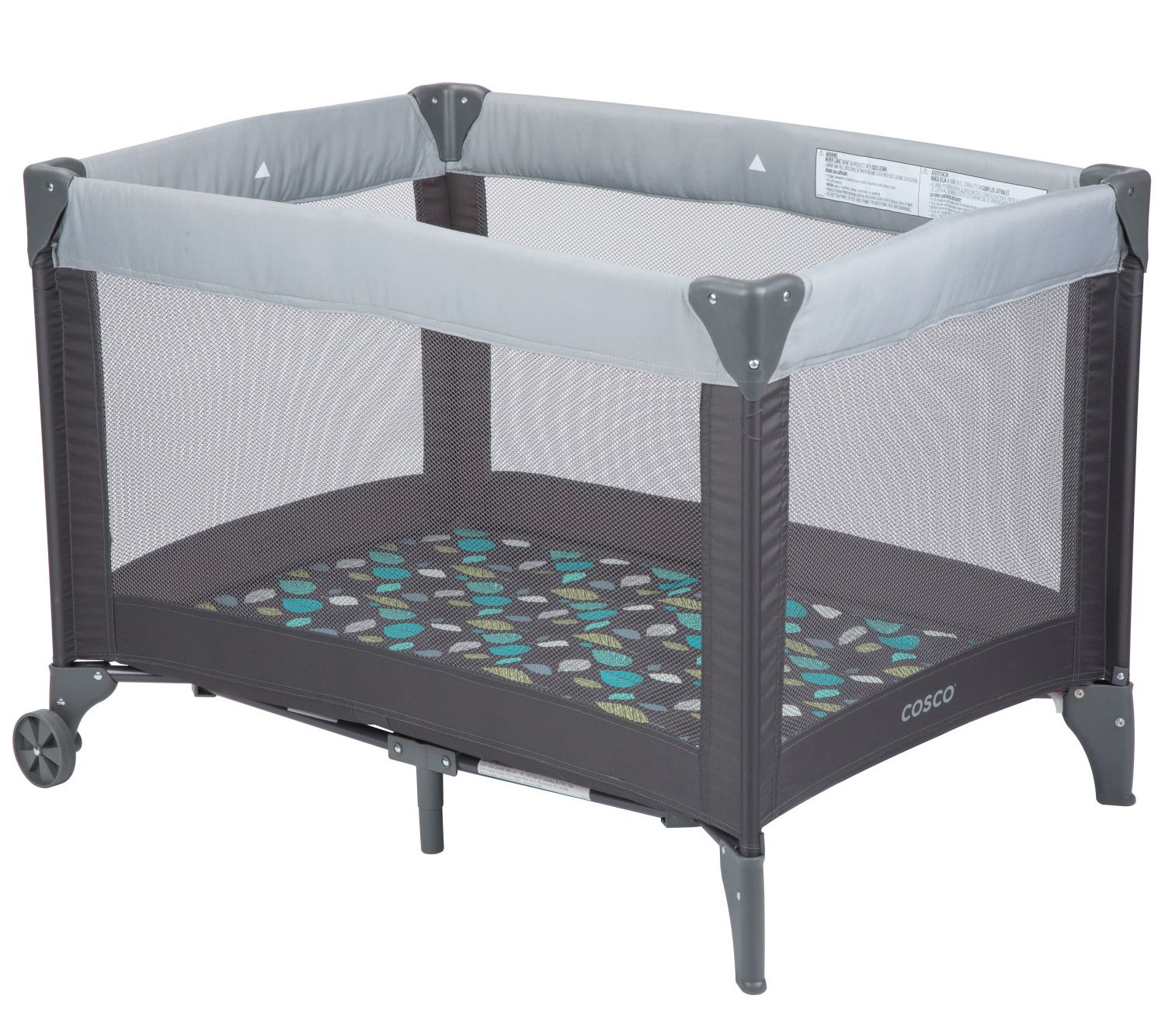Fun at home or on the run, the Funsport Play Yard features a no-nonsense design that sets up in seconds. Nap time or playtime, this roomy play yard keeps baby close and comfy with a padded floor and four mesh sides for easy viewing. It folds compactly into the included carry bag for convenient travel. From Cosco.