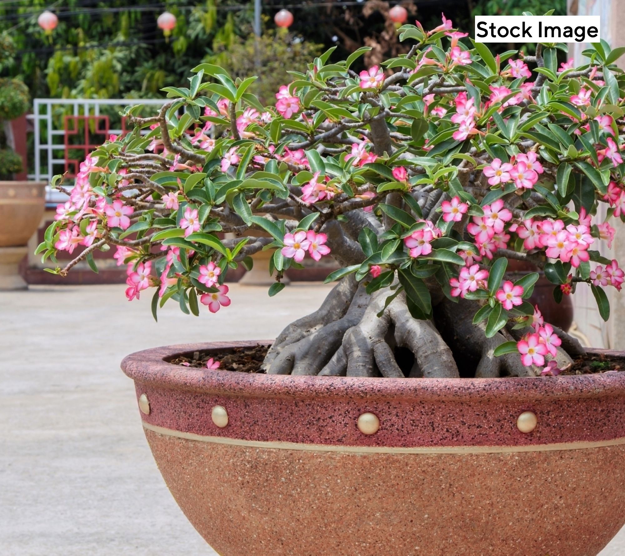 Liven up your sunroom or patio with the Desert Rose plant, a conversation starter thanks to its sculptural base and vibrant pink blooms. This tropical specimen brings color in the summer and remains visually striking throughout the year, needing only minimal care to flourish. From Cottage Farms.