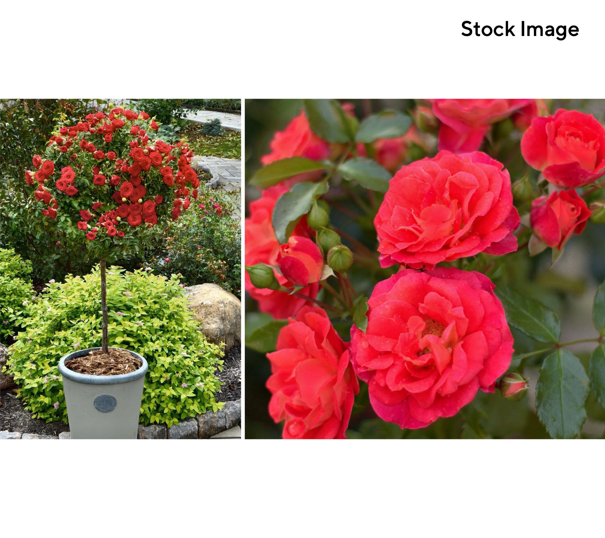 A patio-perfect topiary with eye-catching color, this rose tree flowers all season long and maintains an attractive shape with little upkeep. Frame a doorway or entrance with two of them for a welcoming splash of colorful blooms. From Cottage Farms.
