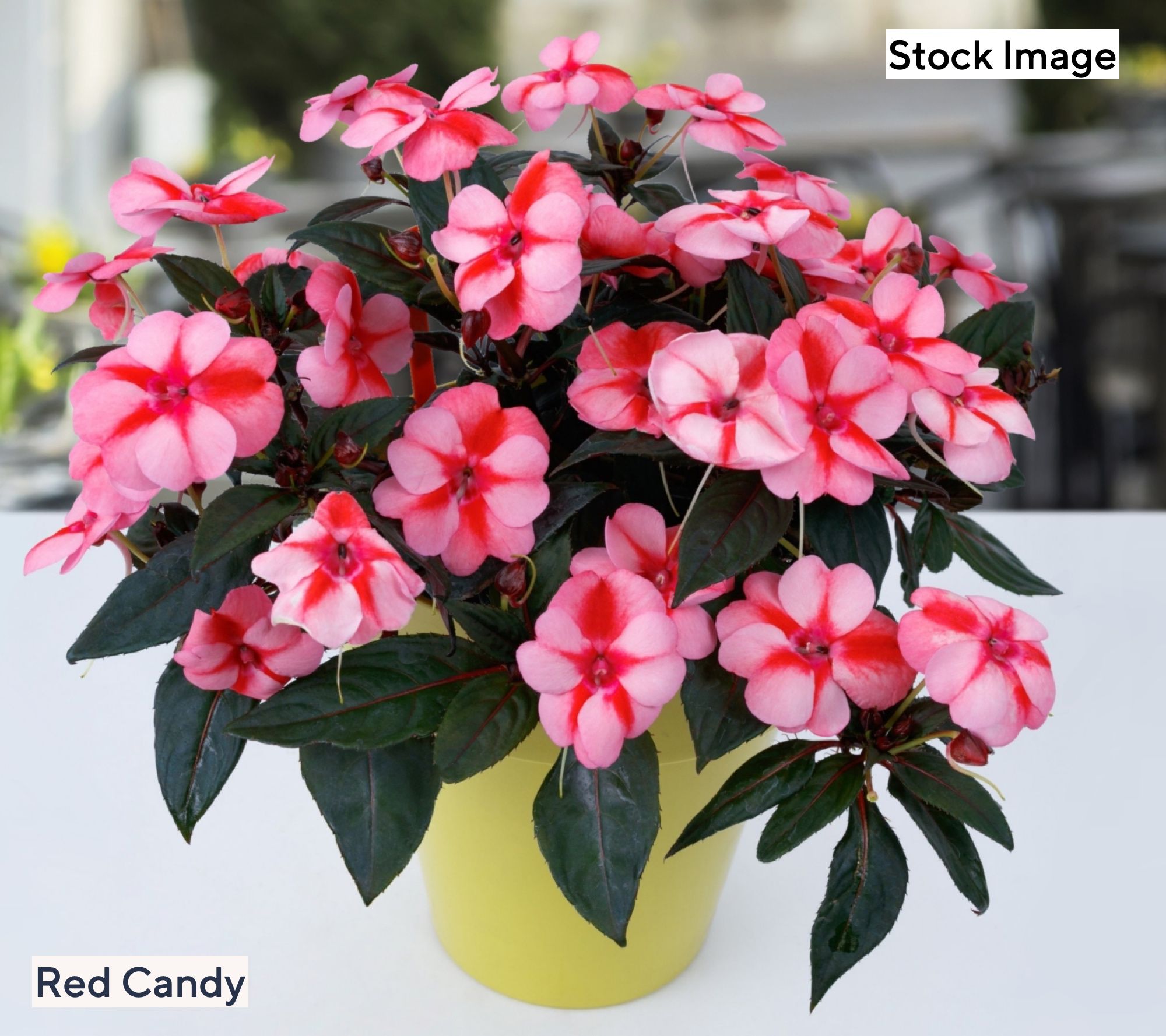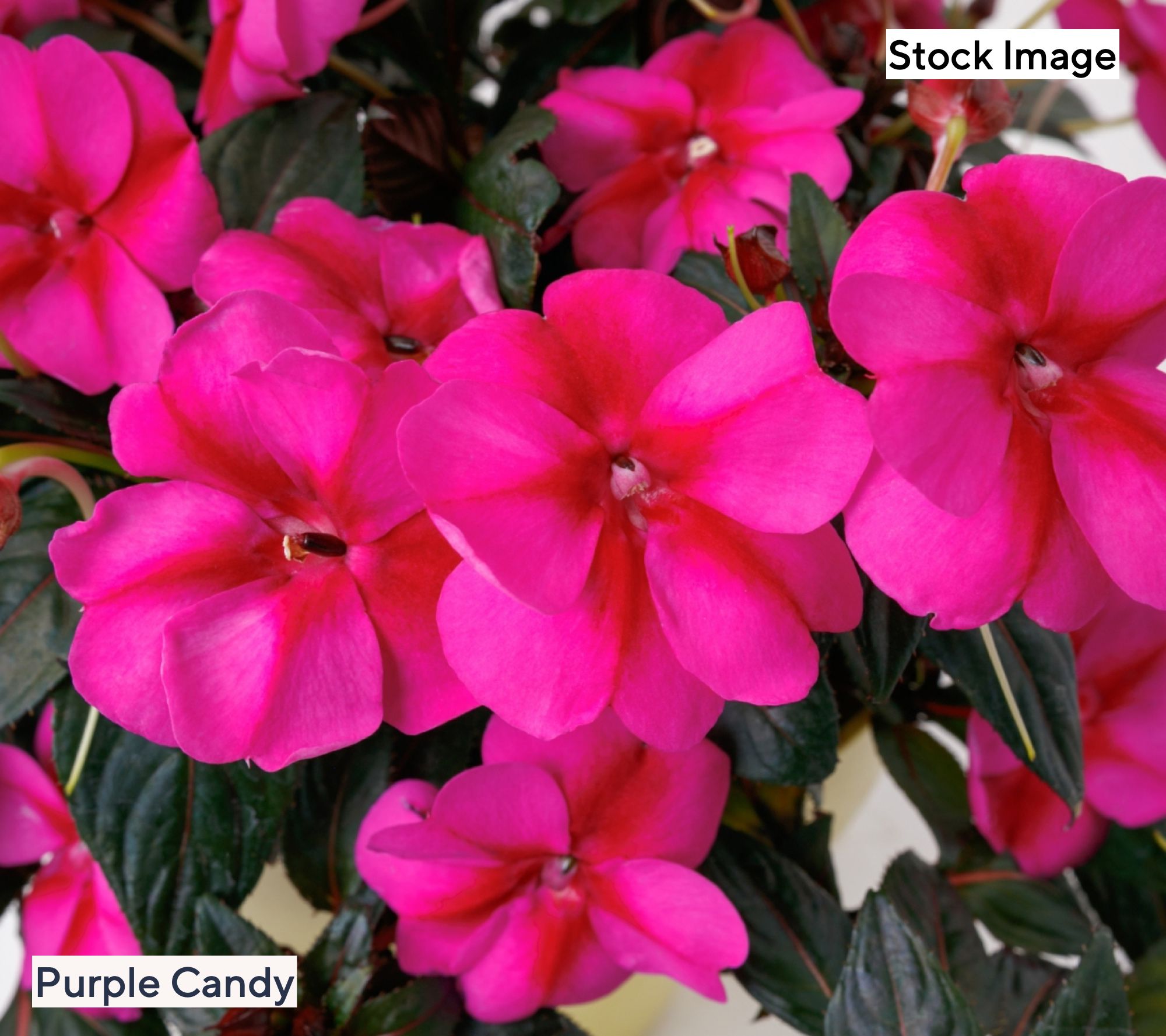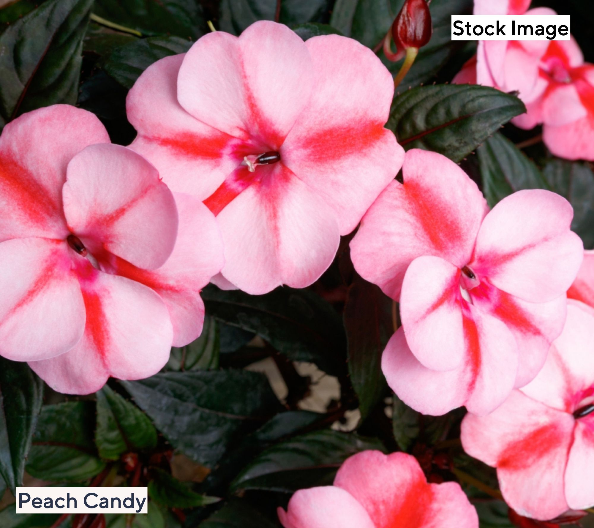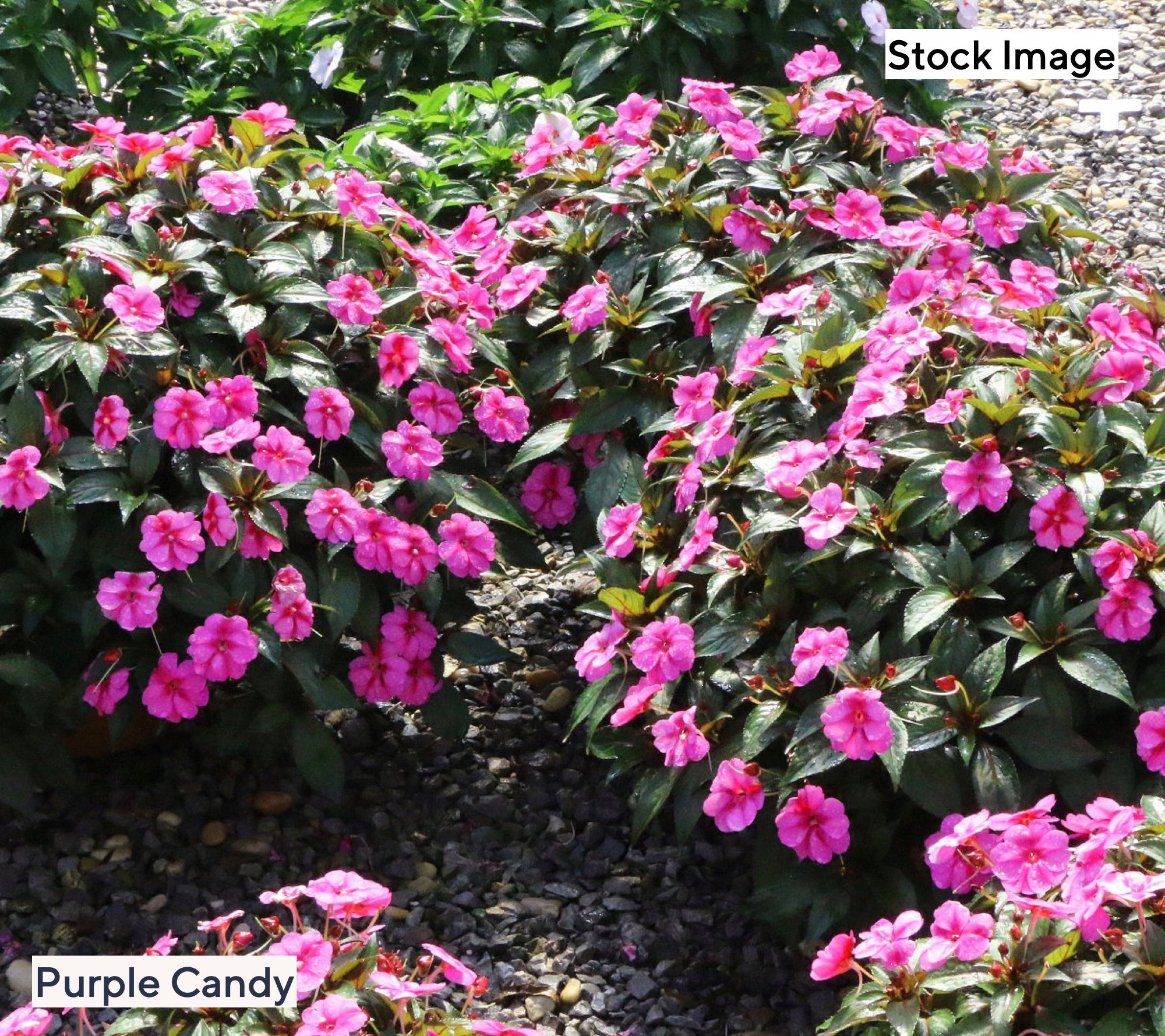 A kaleidoscope of Peach Candy, Red Candy, and Purple Candy SunPatiens creates instant drama in containers, hanging baskets, or mixed borders. These bicolor annuals burst into bloom each spring, thriving even in areas with shorter growing seasons and continuing their lively display until a hard frost. Enjoy nonstop color and robust growth that enlivens your outdoor spaces. From Cottage Farms.