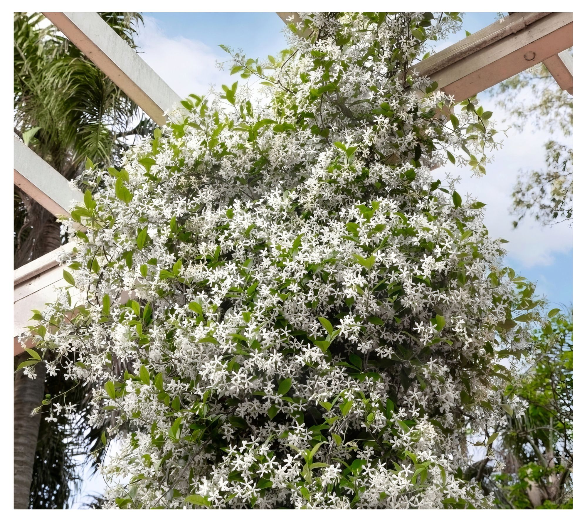 Transform your garden into a fragrant paradise with the Cottage Farms fragrant star jasmine. This award-winning vine is perfect for covering structures and creating privacy while bearing countless star-shaped flowers that perfume the air with the sweet scent of jasmine. Ideal for climbing trellises, arbors, garden walls, and privacy fences, it is an evergreen in warm climates and an excellent patio plant nationwide. From Cottage Farms.