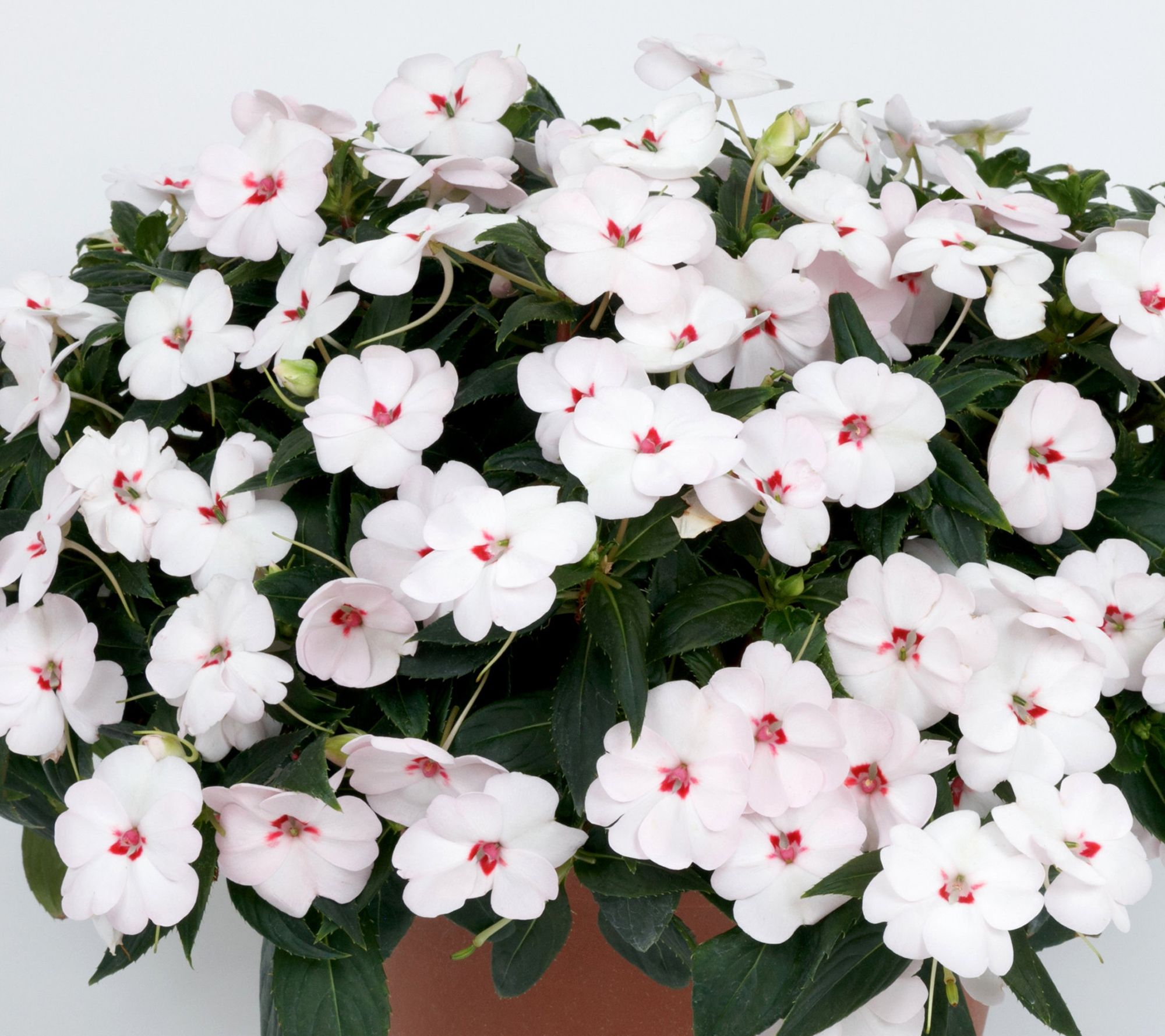 Brighten up your outdoor spaces with the Sweetheart White SunPatiens planter collection, delivering beautiful blooms from spring through fall. These flowering annuals thrive in sun or shade, offering vibrant color and lush coverage for garden beds, borders, or containers -- even in high heat and humidity. From Cottage Farms.