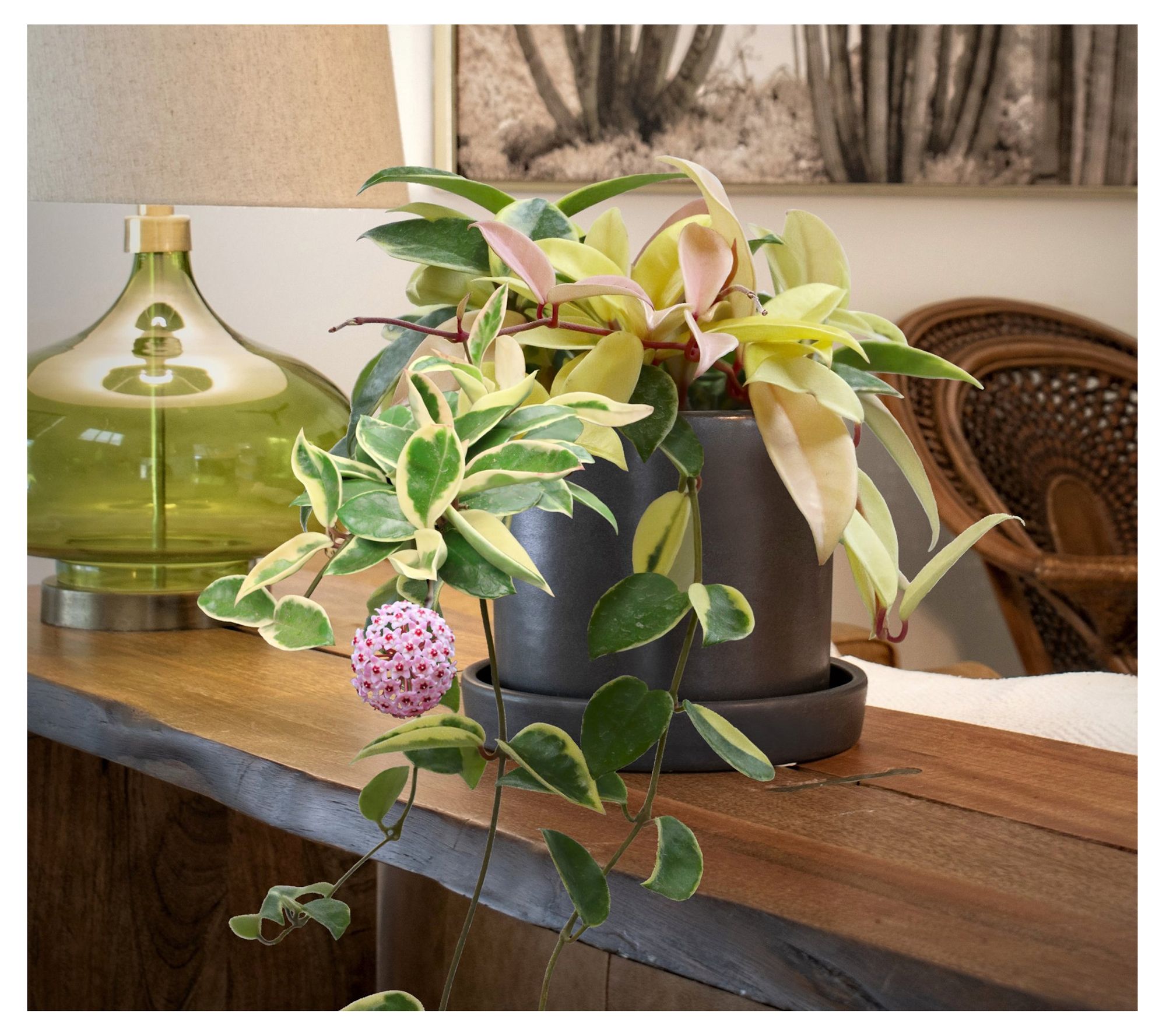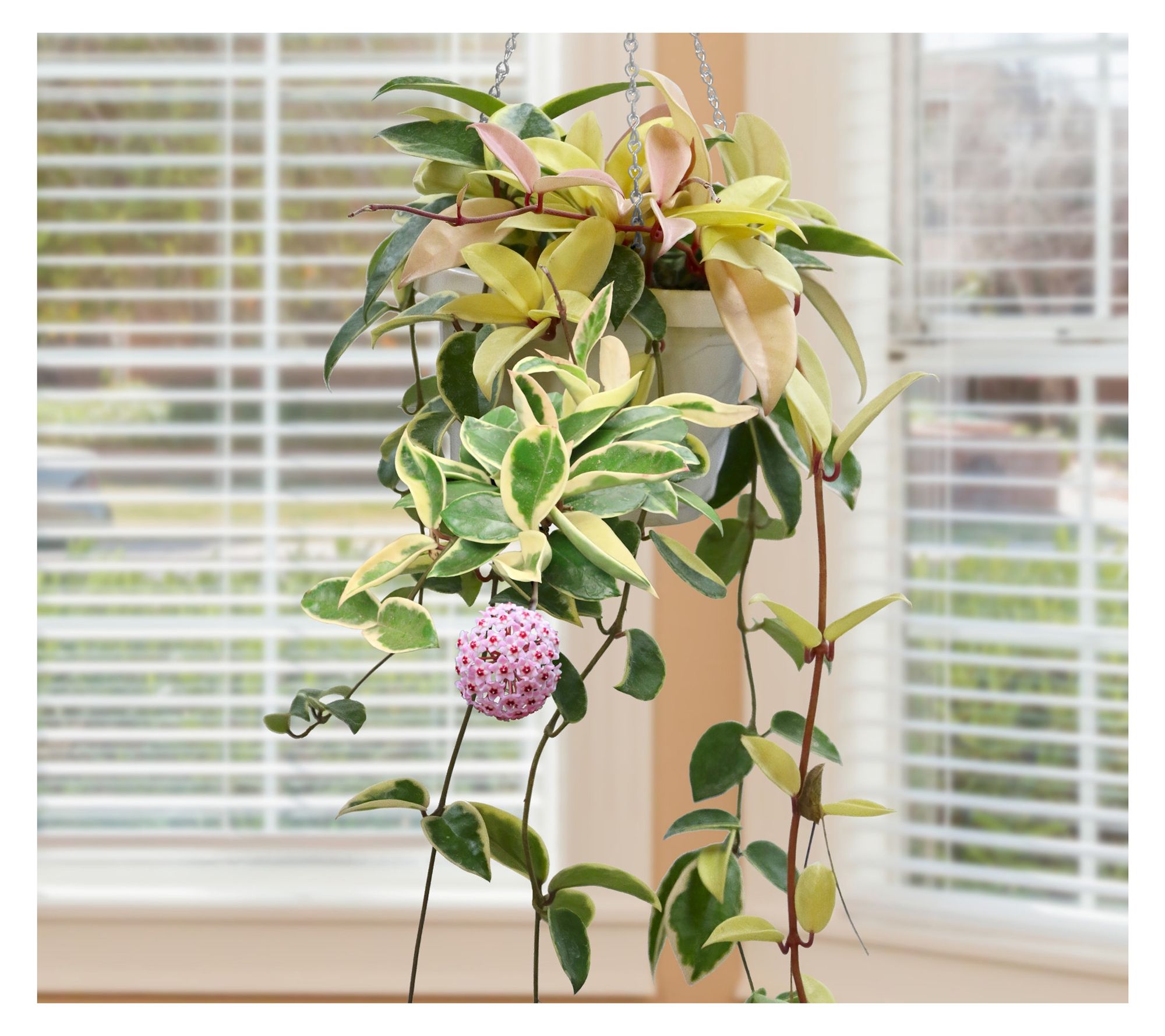 Bring refined style and easy-care greenery to your home with the Krimson Queen Wax Plant. Dramatic variegated foliage and trailing stems make it a stunning accent for hanging baskets or bright shelves, creating a stylish focal point in living rooms, bedrooms, or even offices. From Cottage Farms.
