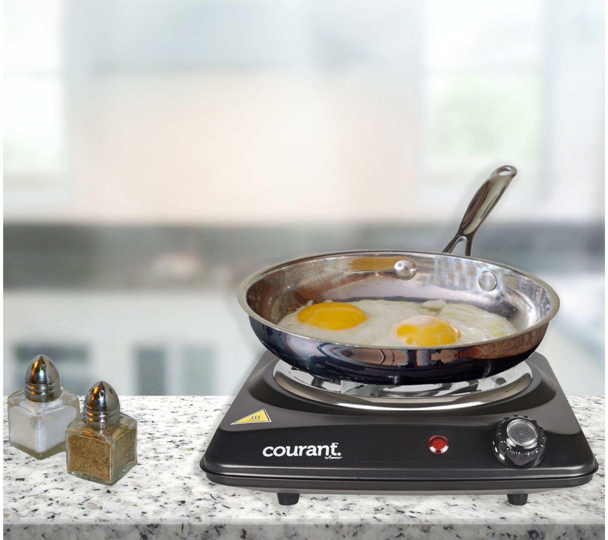 Quickly prepare food in your kitchen or at your workspace with this powerful portable burner that saves space on your countertop thanks to its compact design. From Courant.
