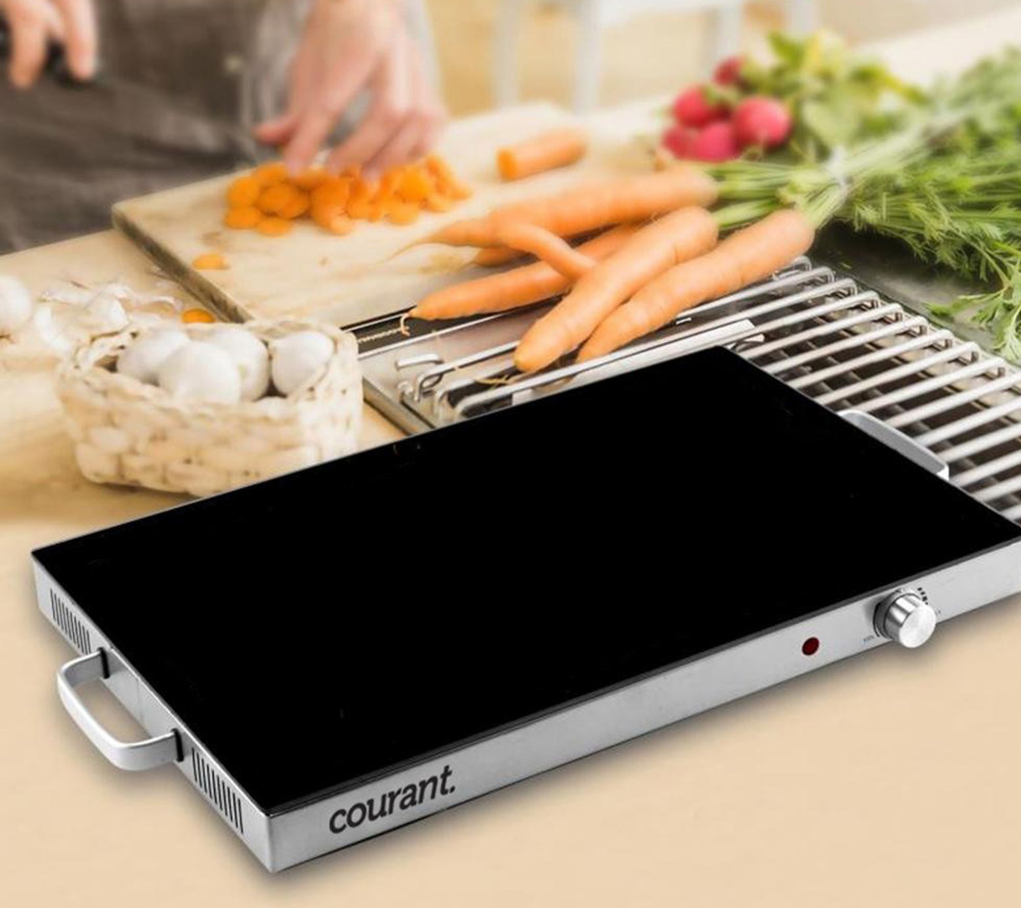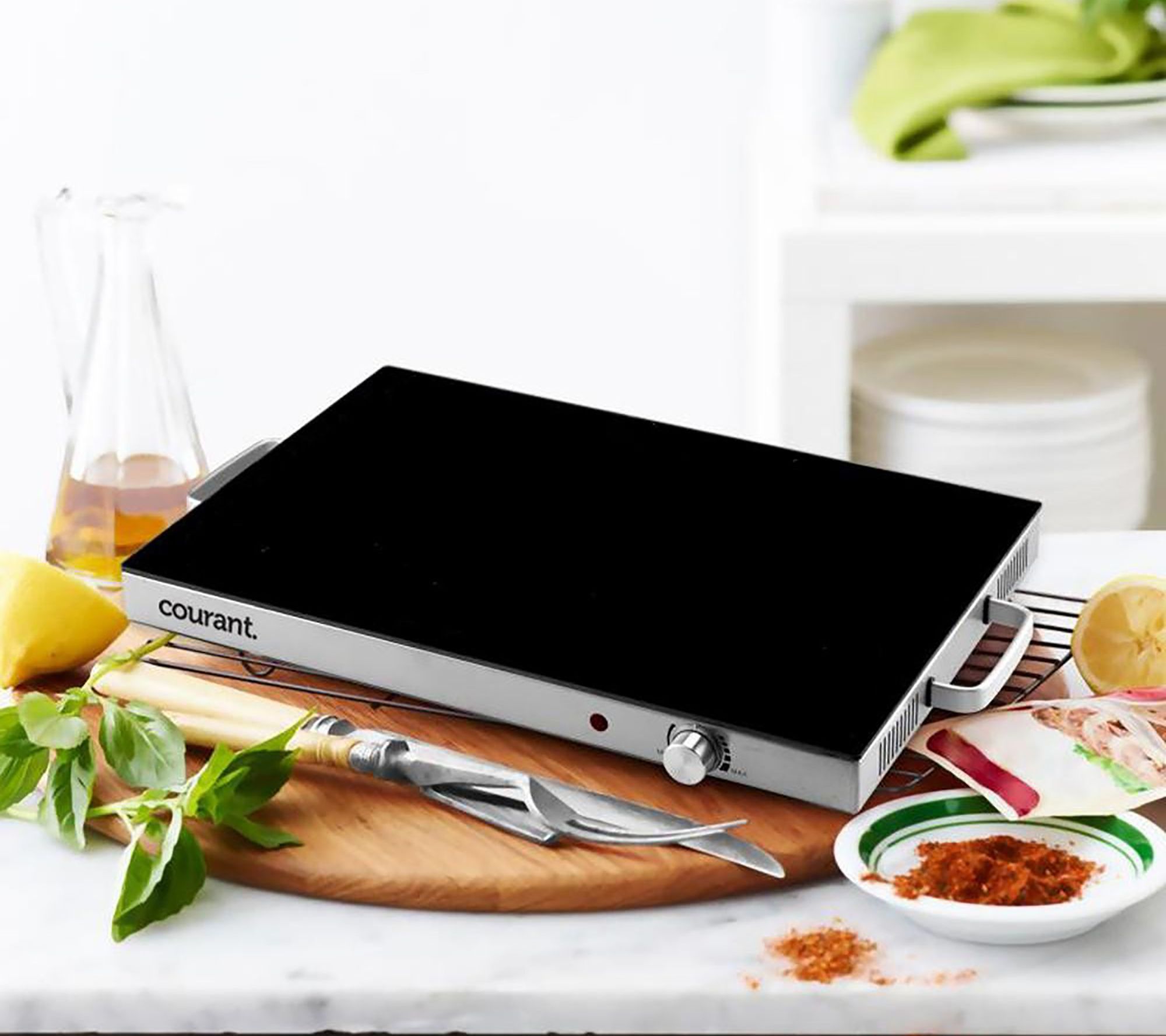 Serve your guests with confidence using this expertly designed warming tray featuring cool-touch handles and easy-to-use temperature control. From Courant.