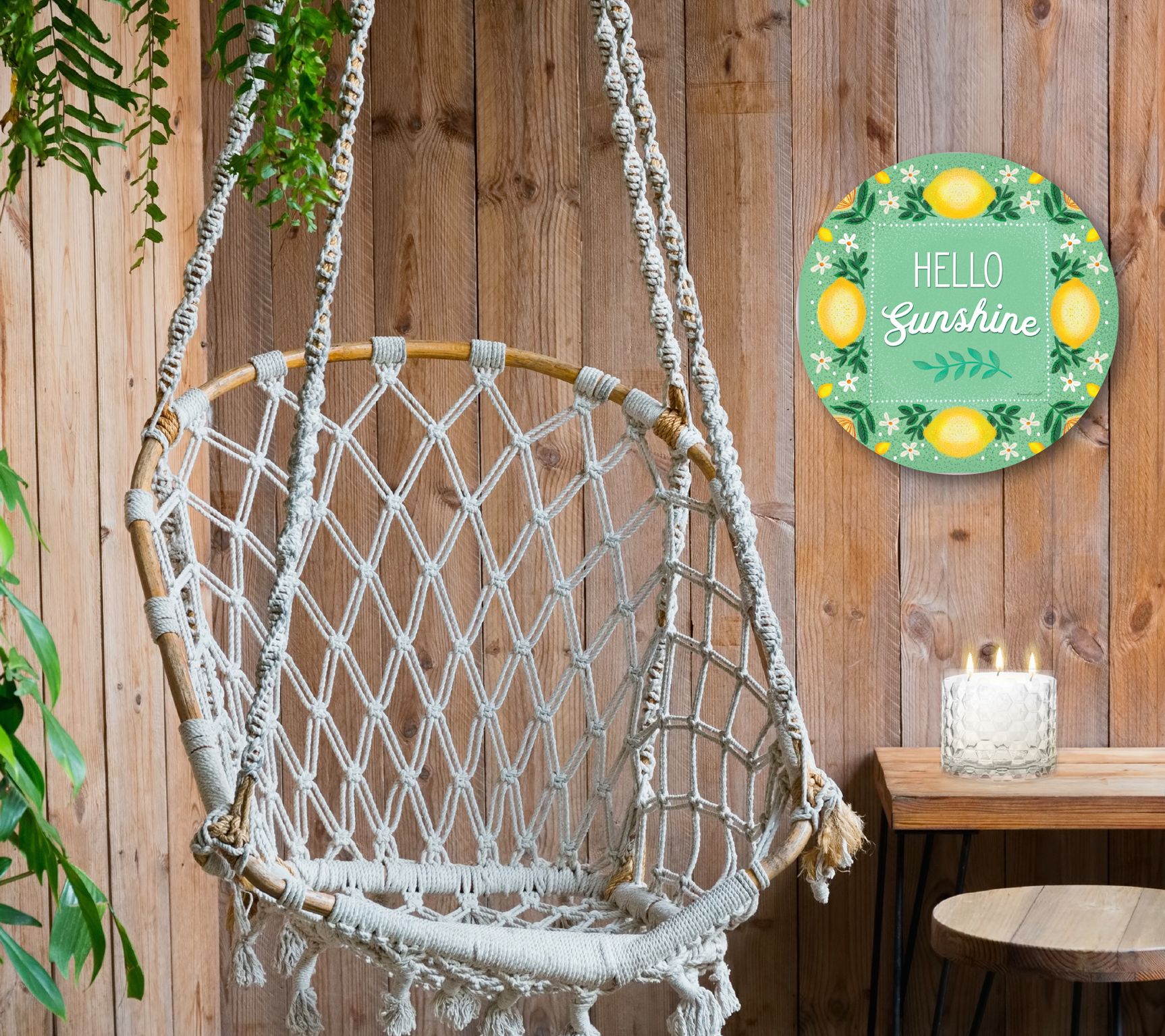 This decorative art board and cozy three-wick candle make a perfect pairing as a hostess gift for your next barbecue or patio party invite. From Courtside Market.