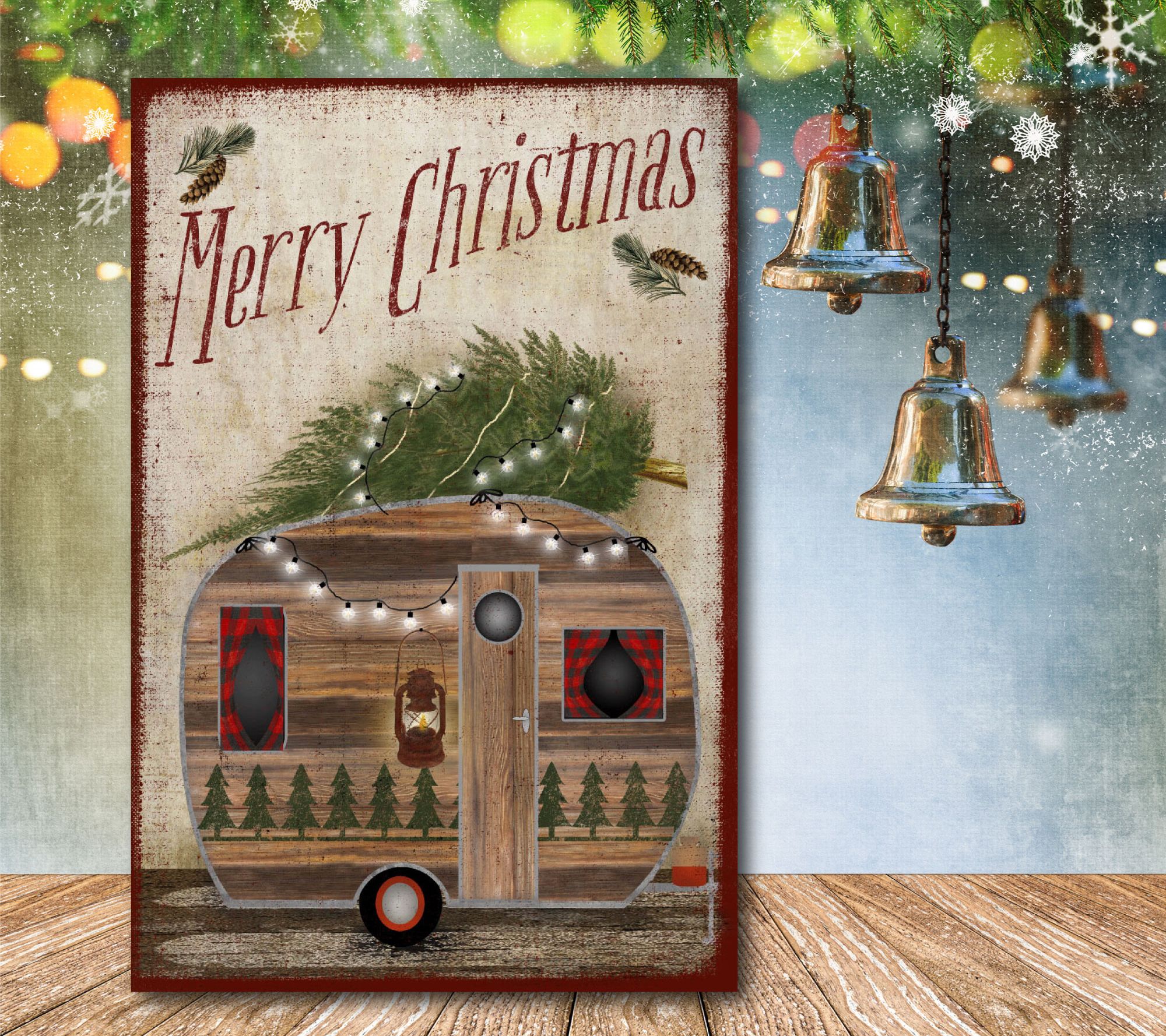 Courtside Market Camper Rustic Christmas 18x26anvas