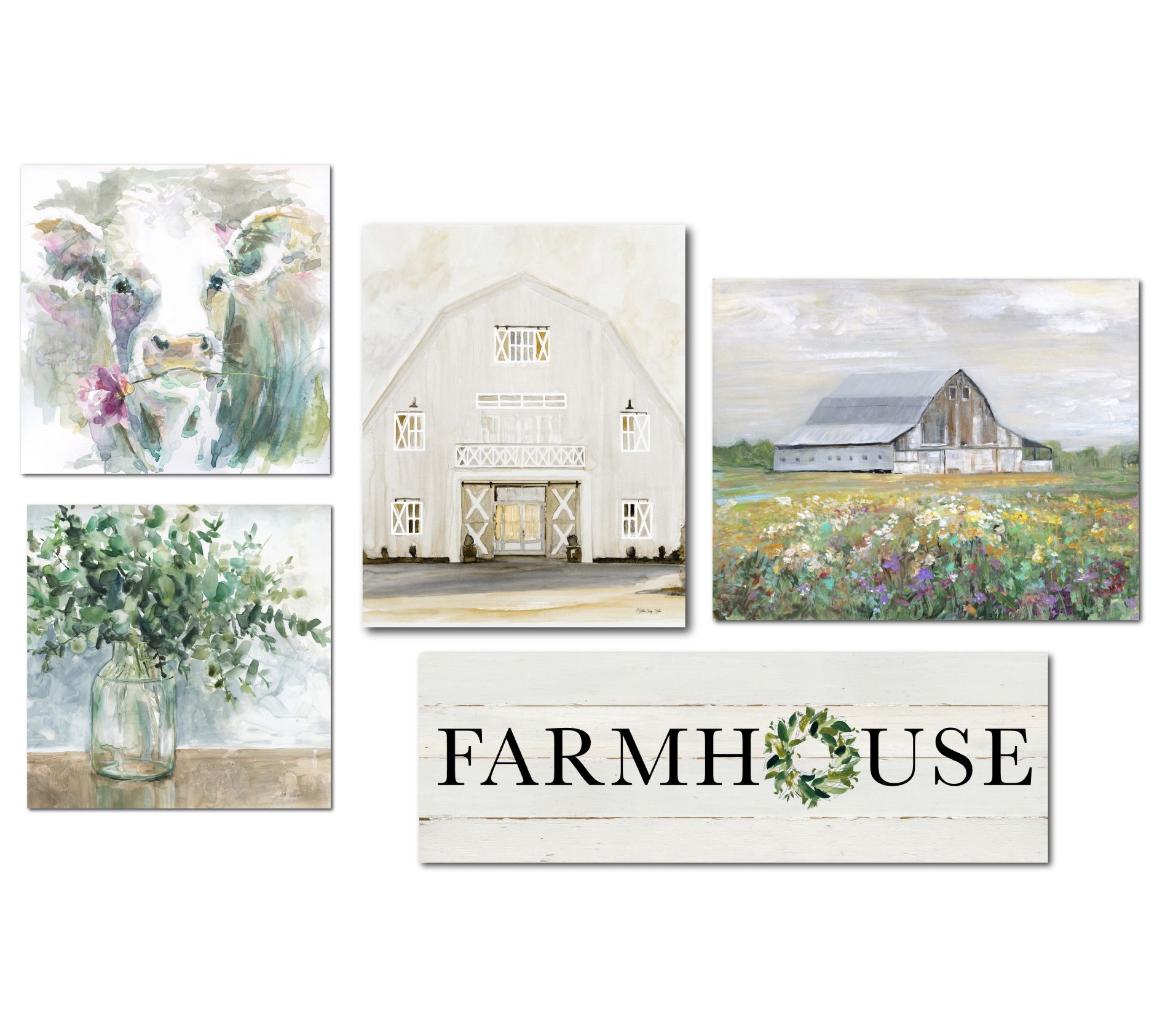 Change up any room in your home or office with these five gallery-wrapped printed canvas art pieces in a charming farmhouse theme. Hang them as a group or separately. From Courtside Market.