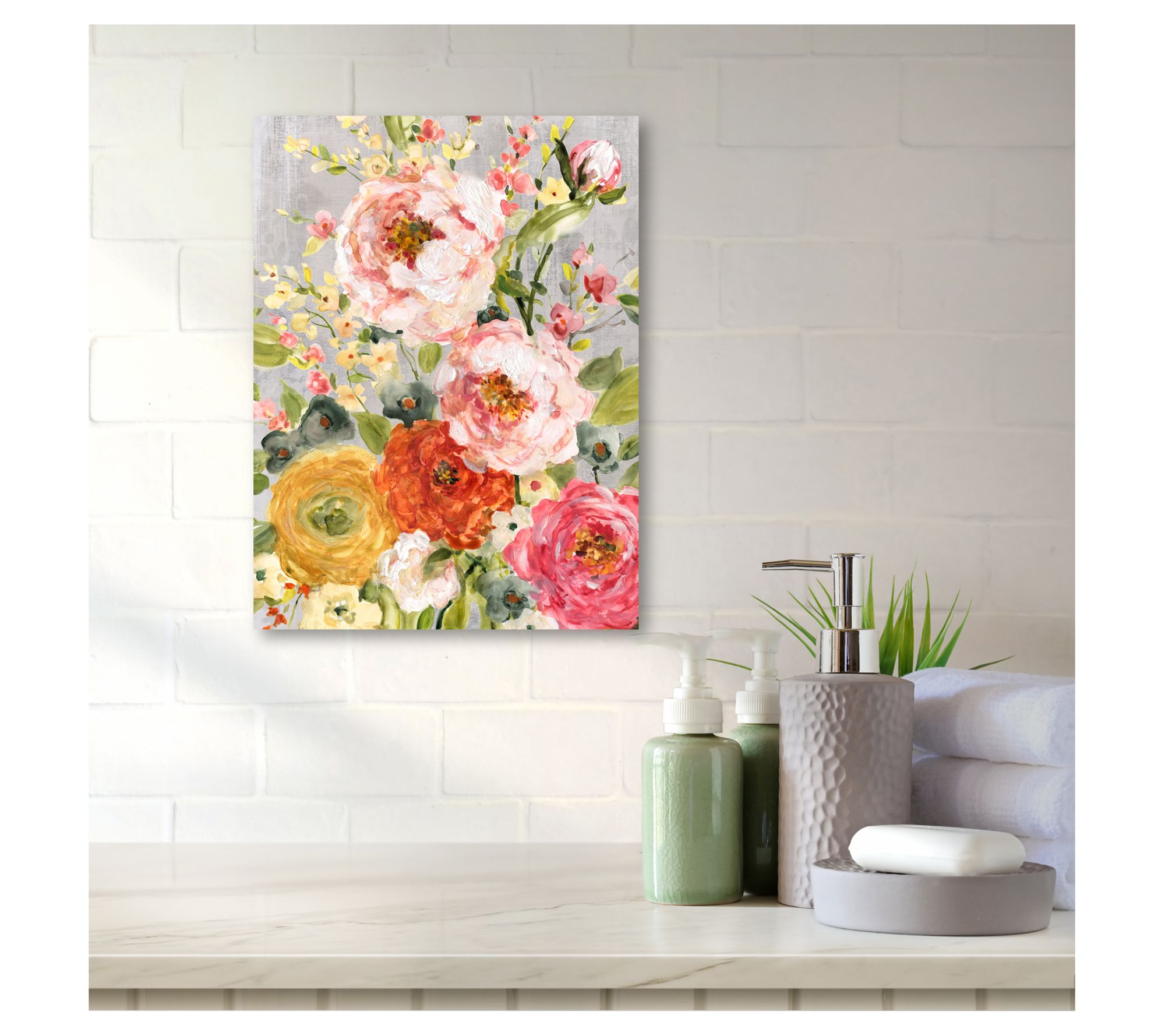 Add lush elegance and beautiful color to your room with this Damask Garden canvas wall art, featuring a stunning blend of pinks, corals, greens, and yellows. From Courtside Market.