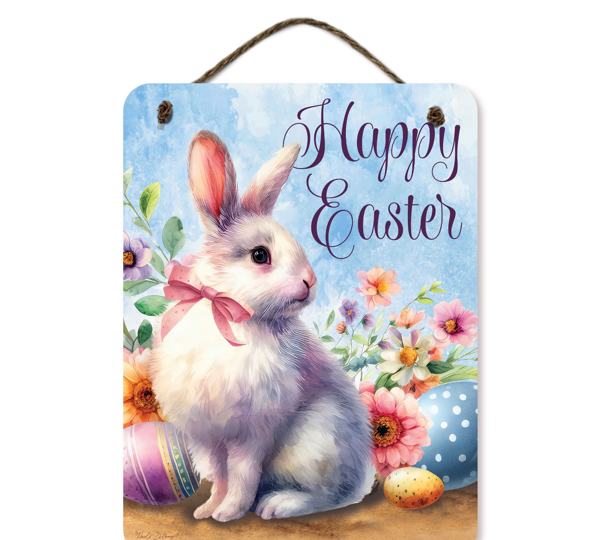 Welcome spring into your home with this charming Happy Easter bunny artboard. With its rustic design and wood construction, it adds a warm, welcoming touch to your entryway or porch. The twine hanger makes it easy to display, so you can enjoy this delightful decoration right out of the box. From Courtside Market.