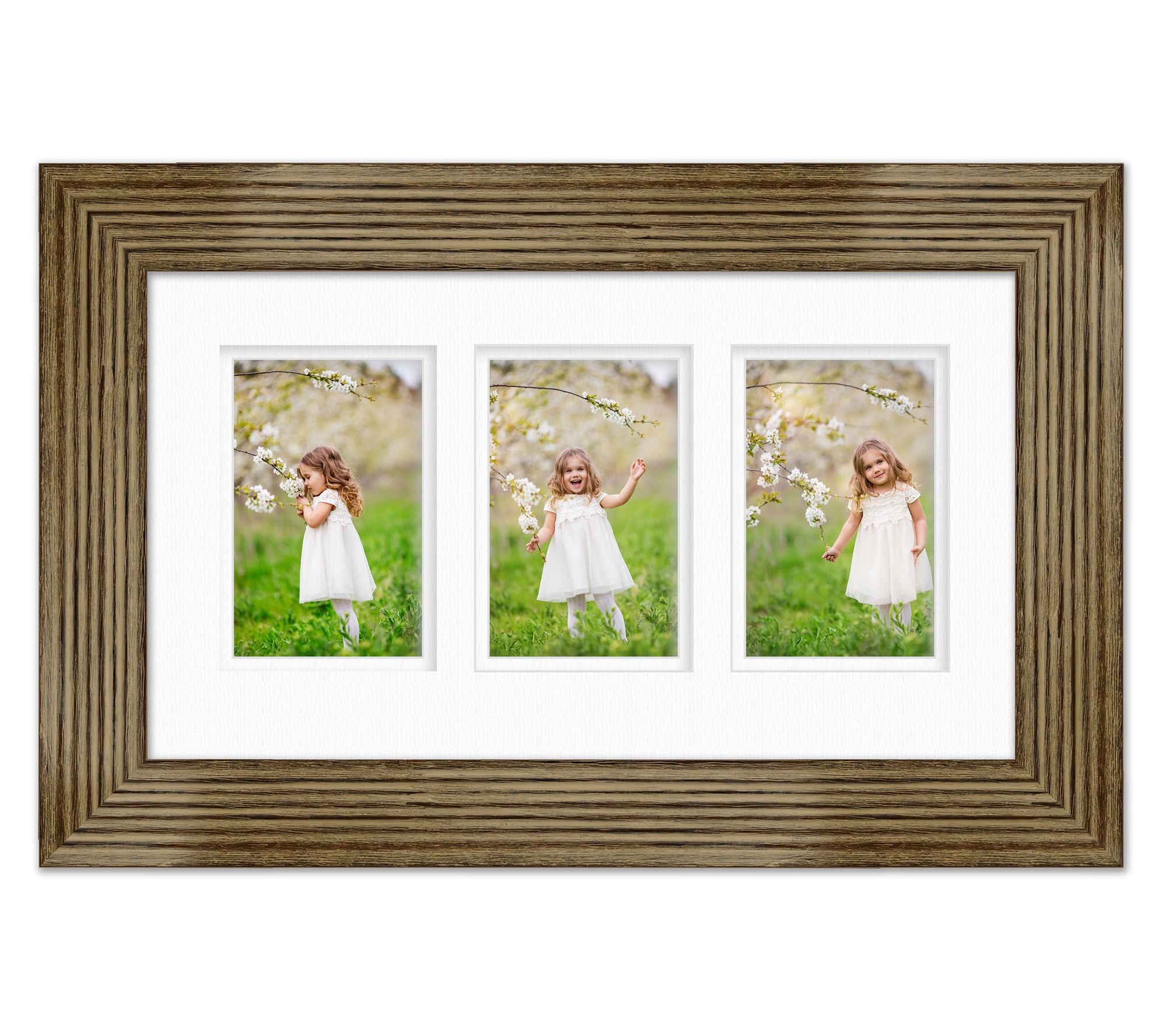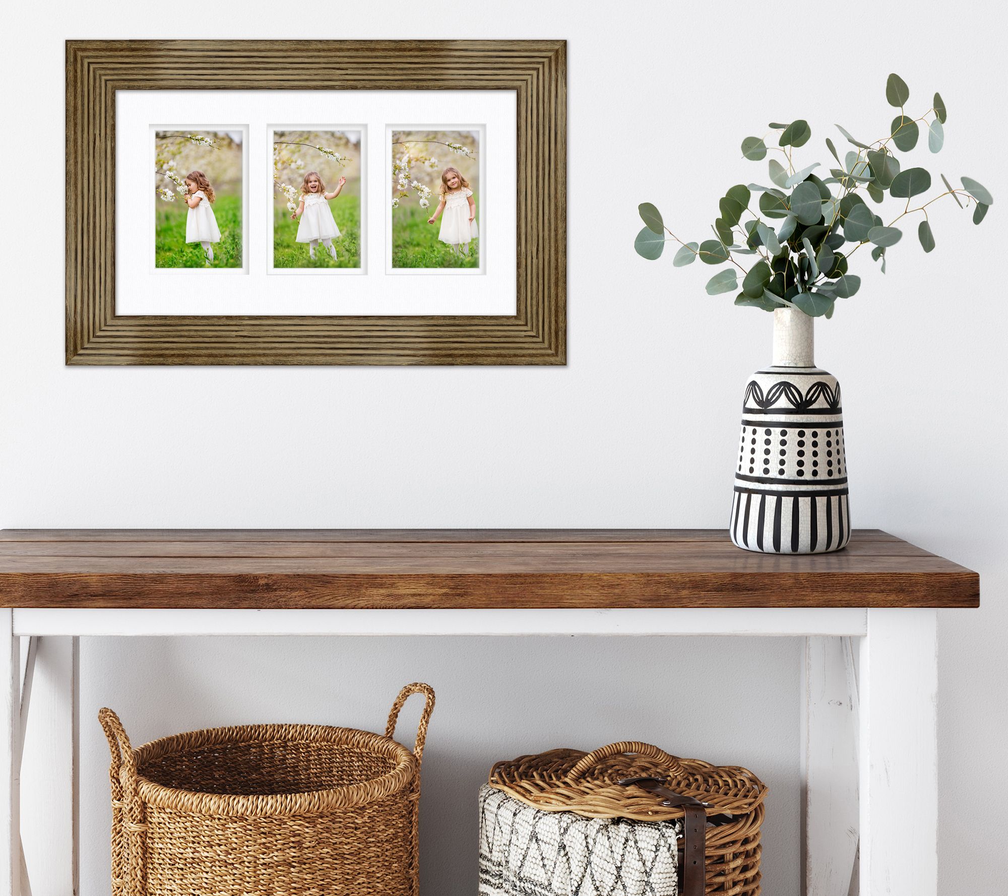 Embellish your wall with the down-home charm of this cottage-inspired frame boasting an intriguing textural finish and space to display three treasured memories. From Courtside Market.