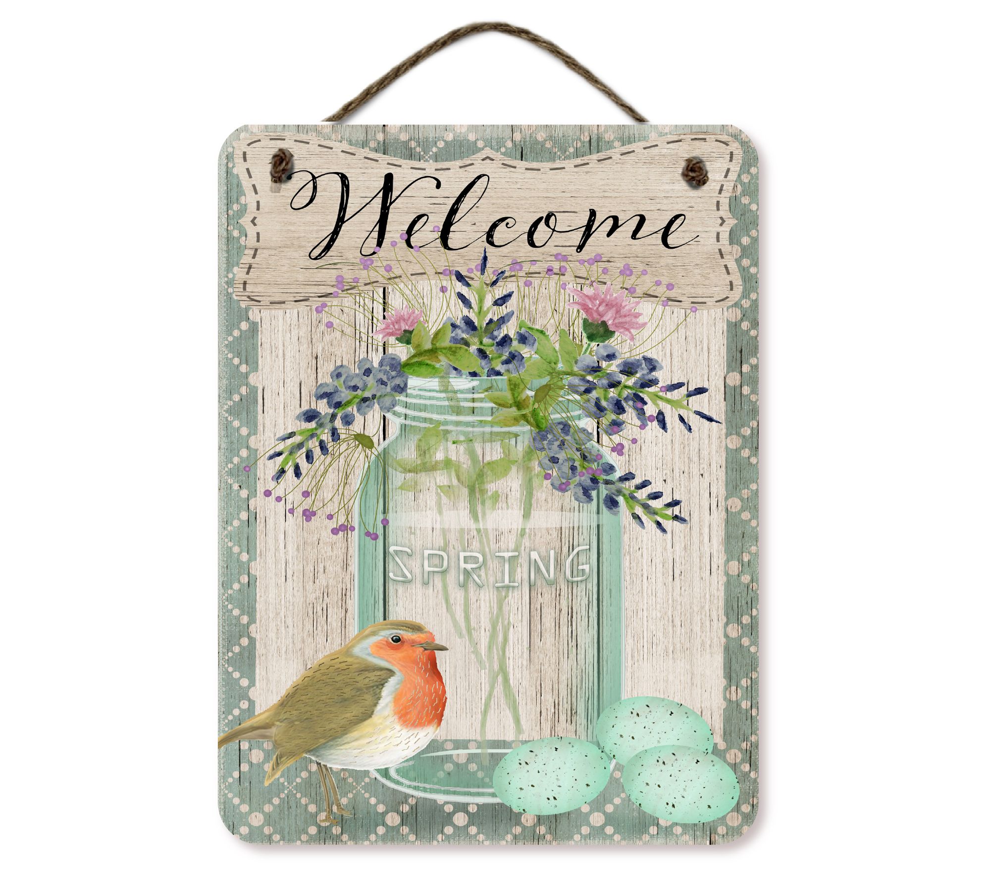 Bring the charm of rustic spring to your home with this beautifully designed artboard. Featuring a mason bird theme, it's perfect for leaning on a shelf or hanging in your entryway or porch, providing a warm welcome to all. From Courtside Market.