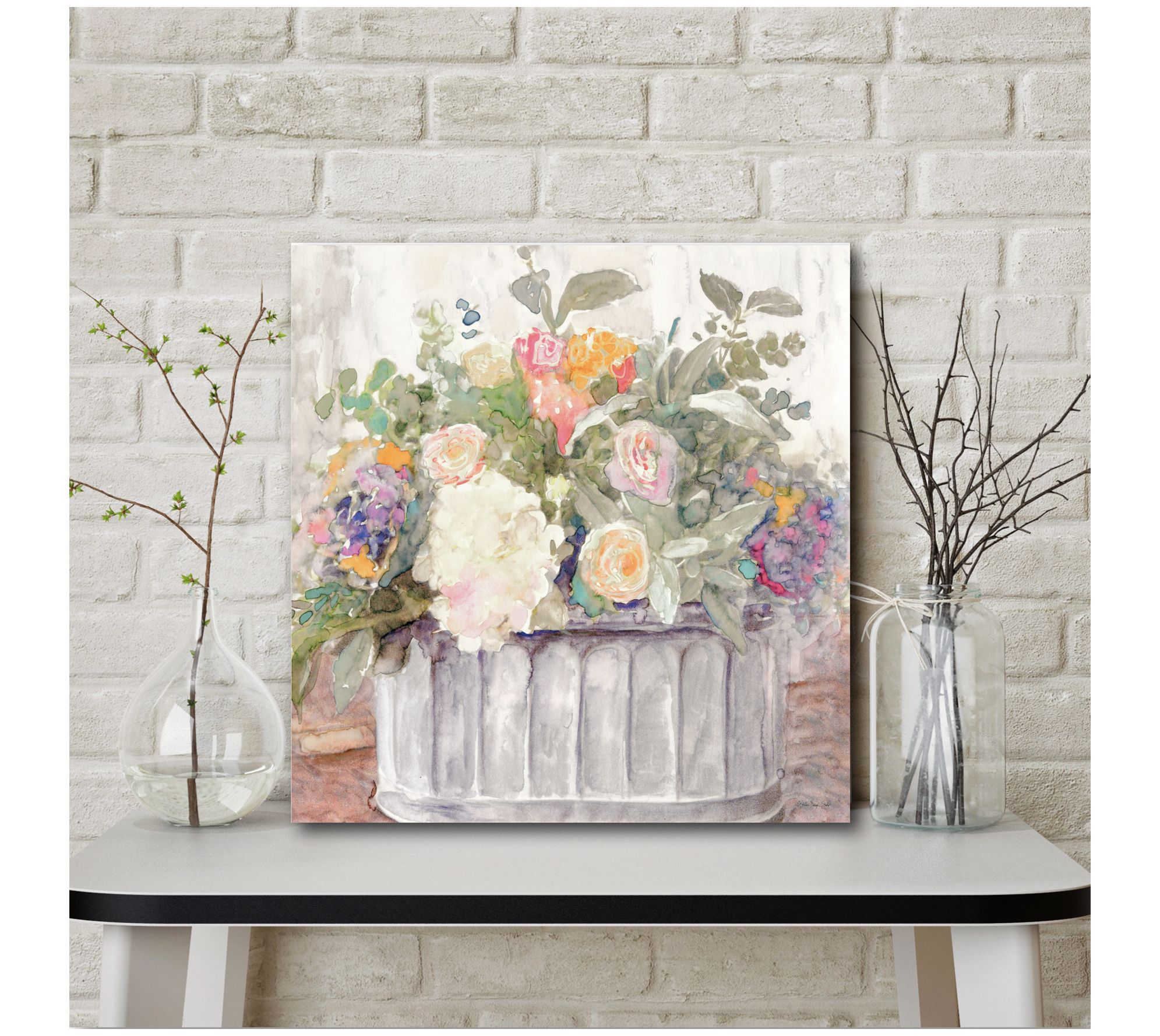 Filled with the gentle colors and soft lines of a watercolor painting, this Table Bouquet I canvas wall art adds simple beauty to your space. The printed canvas is professionally-wrapped around structurally-engineered stretcher bars for stability and long-lasting beauty. From Courtside Market.