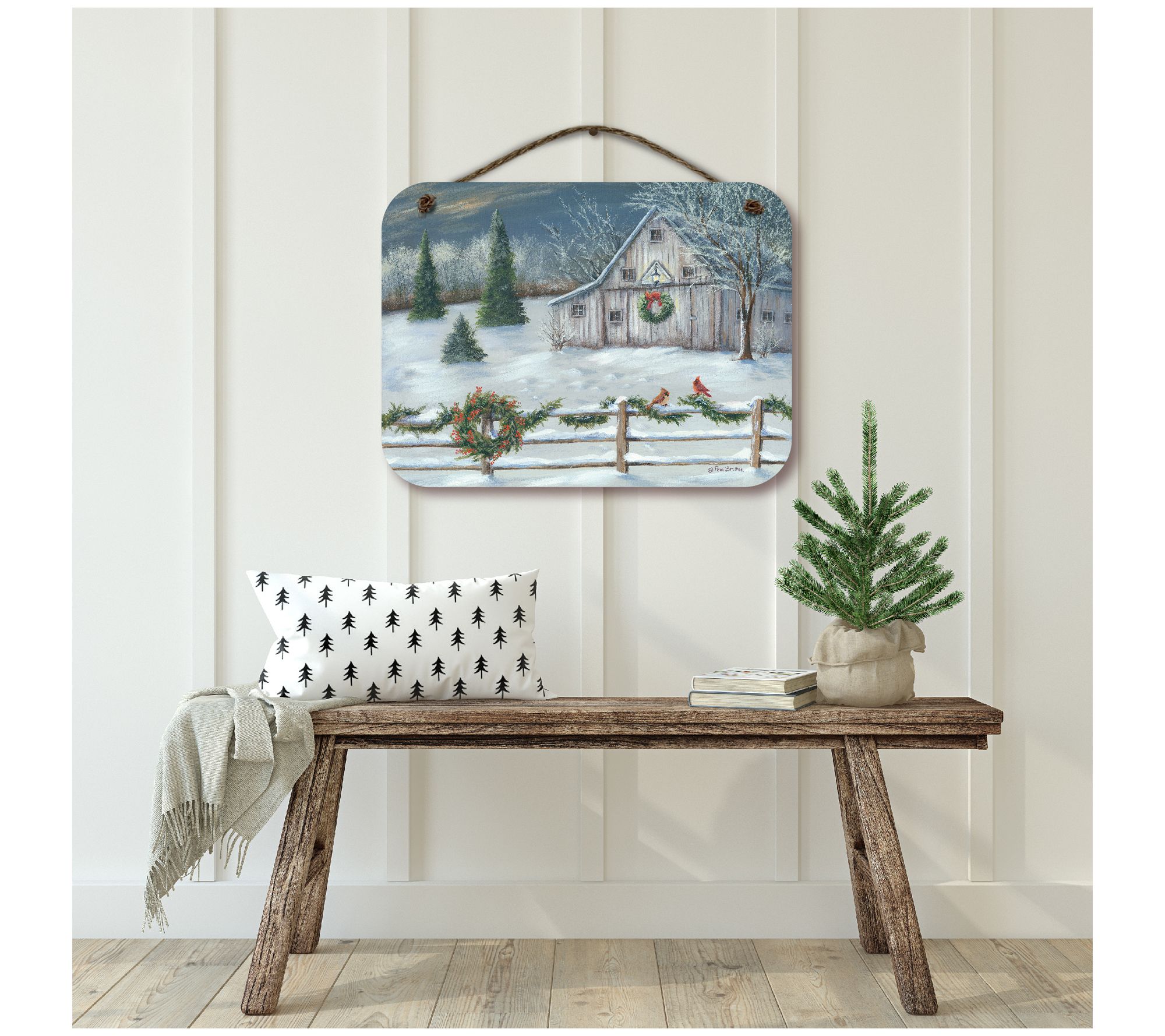 Courtside Market White Christmas Barn 12x16 Hanging Sign