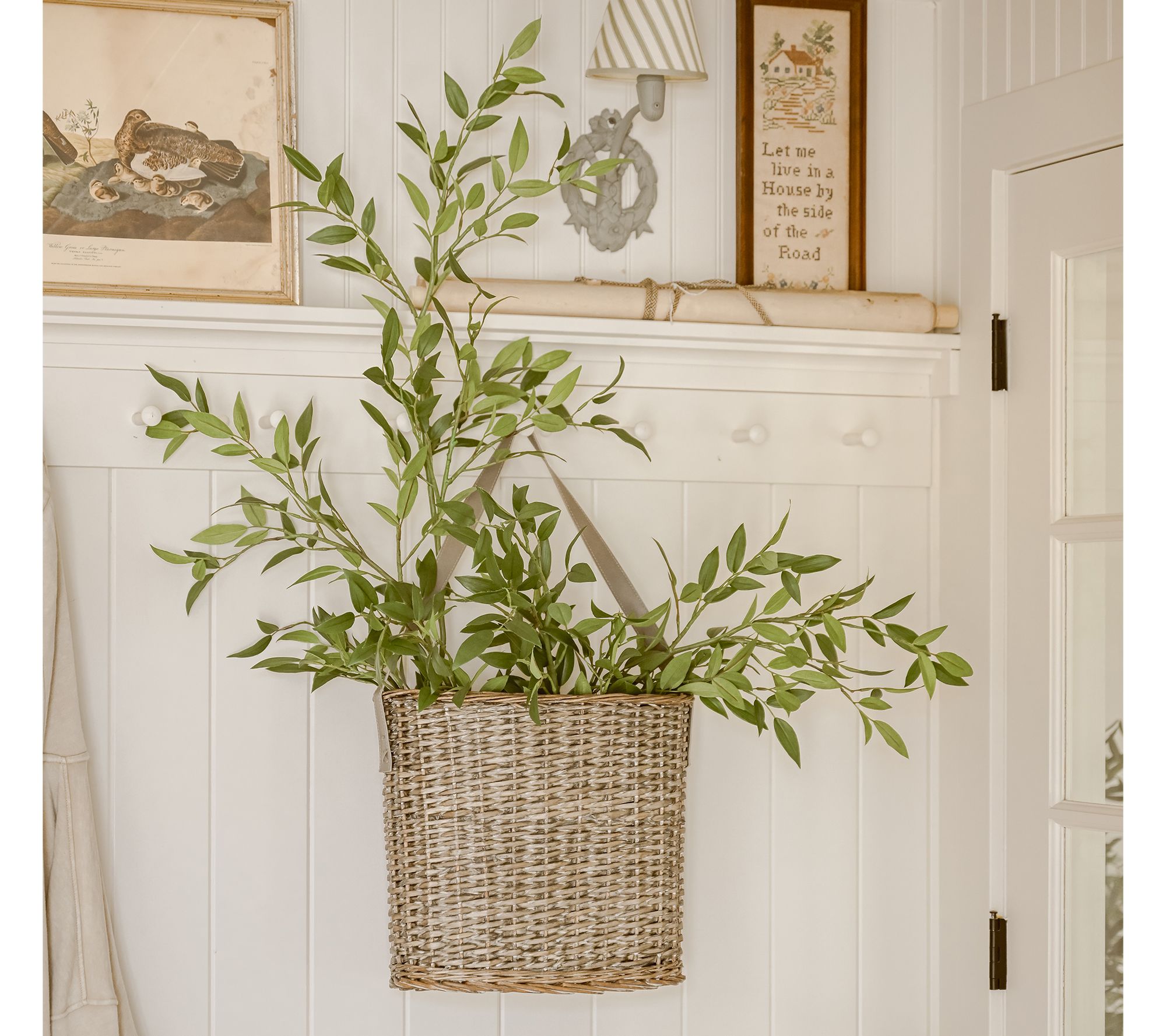 A pretty place for picks or pinecones, these willow baskets have faux leather handles for an extra touch of style. From Cozy Cottage by Liz Marie.