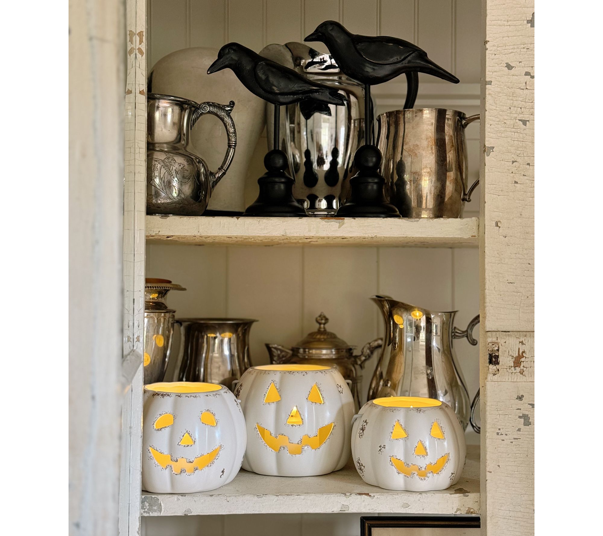 Cozy Cottage by Liz Marie Set of 3 White Jack-O-Lanterns