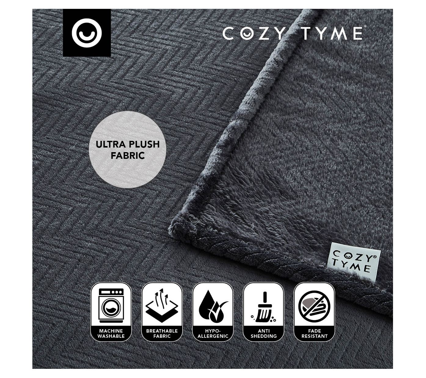 Cozy Tyme Akamu Throw Blanket Dark Grey Polyester
