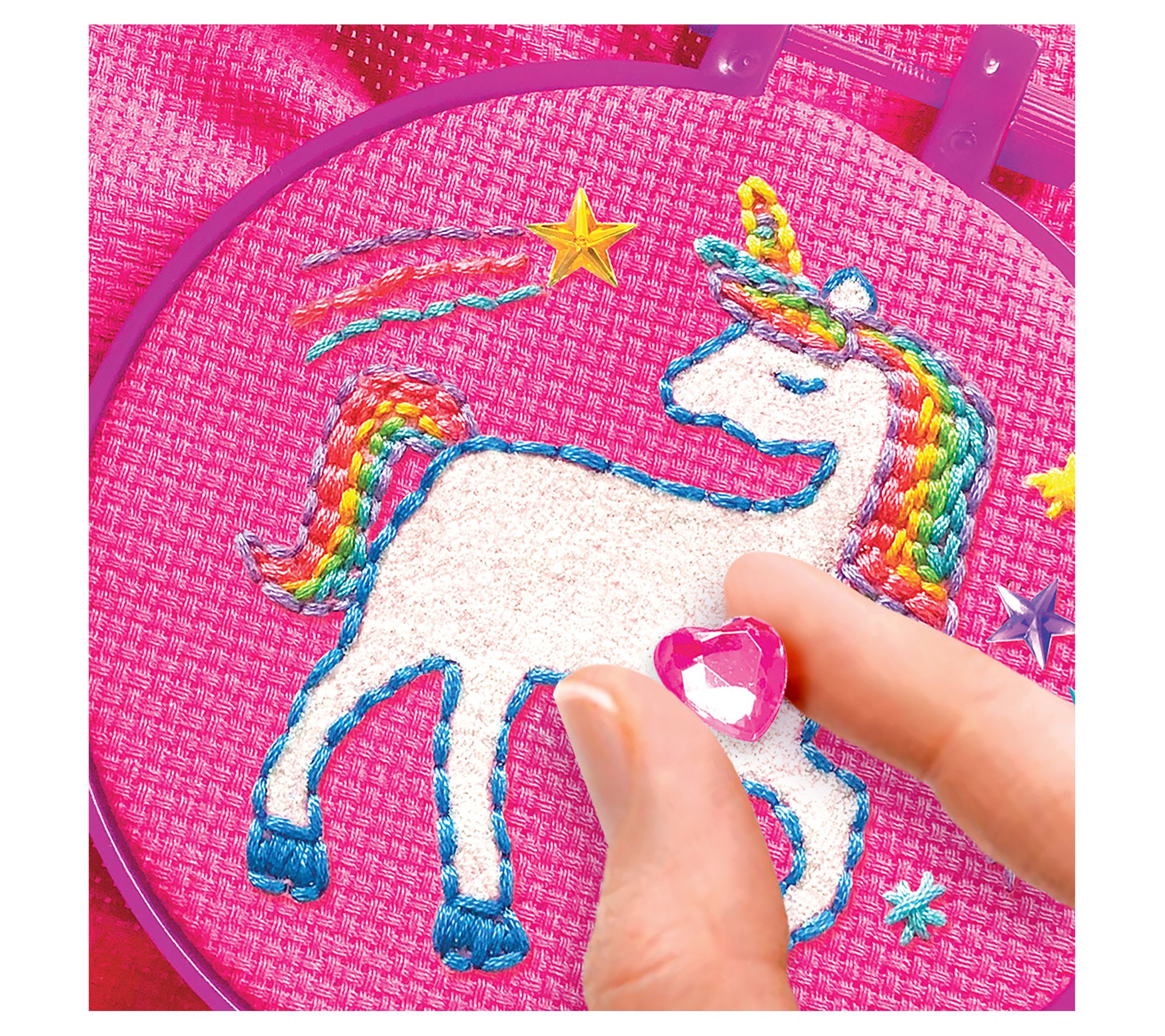 Bring your child's creativity to life with this shimmery and sparkly unicorn-themed embroidery kit. From Cra-Z-Art.