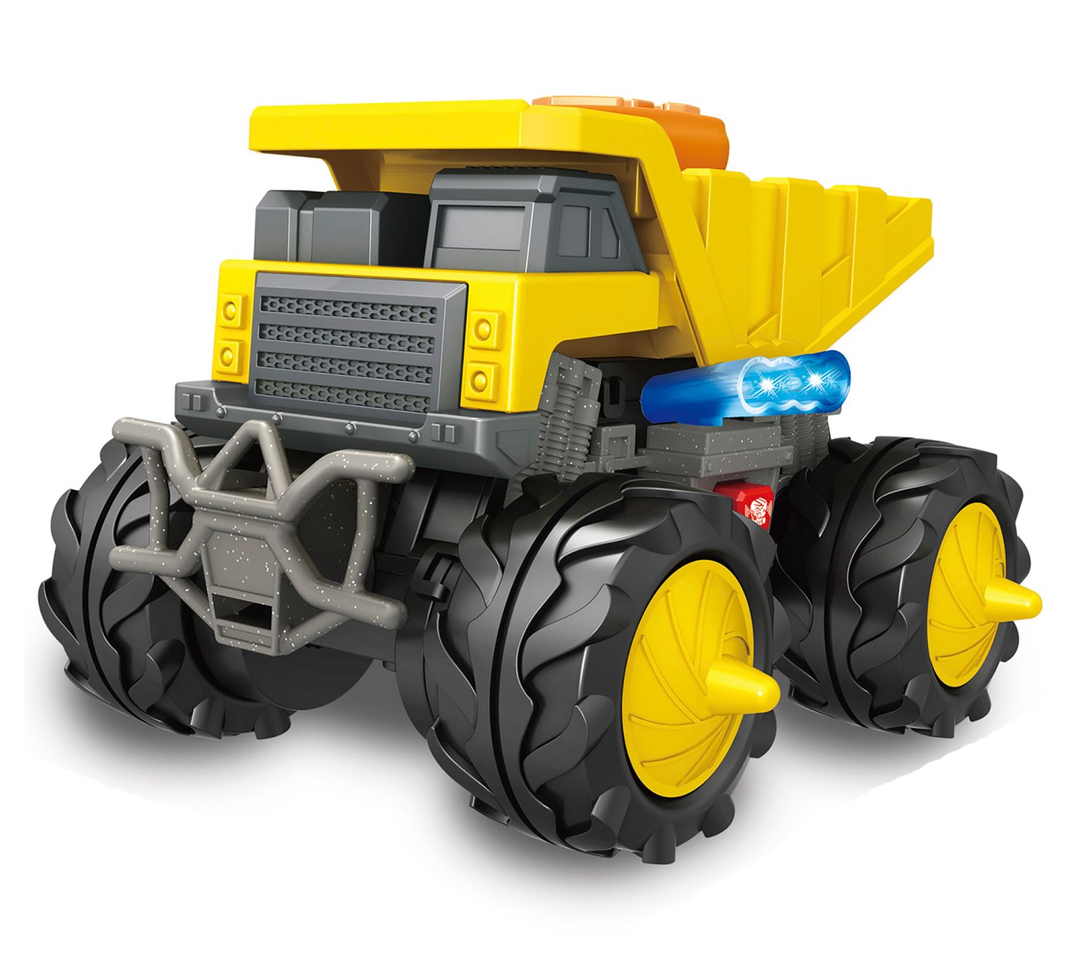 Bring excitement to playtime with this motorized dump truck toy, complete with dynamic lights and lively sound effects that spark adventure in every turn. Little construction fans will love watching it zip around and perform fun driving stunts -- no setup needed, just pure action right out of the box. From Thin Air Brands.