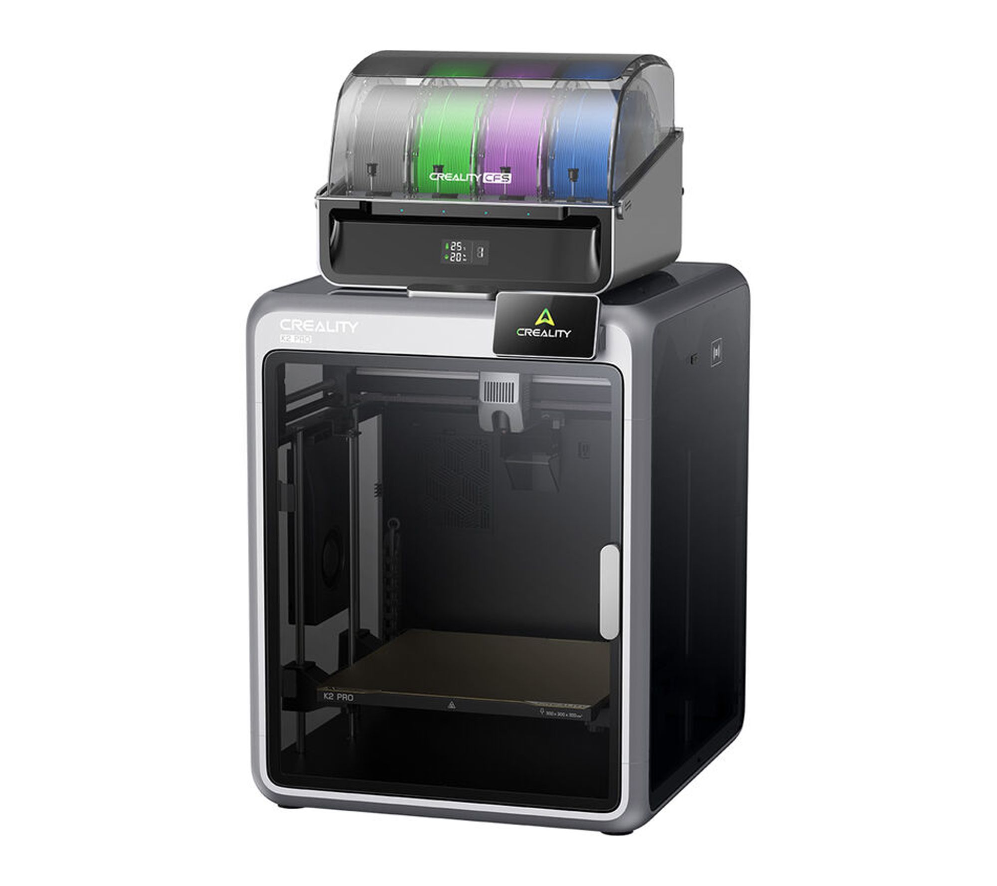 Bring your ideas to life with this K2 Pro 3D printer that combines multicolor creativity and pro-level precision. Tackle everything from helmets to miniatures in a spacious enclosed chamber, while smart AI cameras and auto leveling help every print go smoothly with less hassle. Multicolor filament support lets you print in up to four colors for vibrant, detailed results. From Creality.
