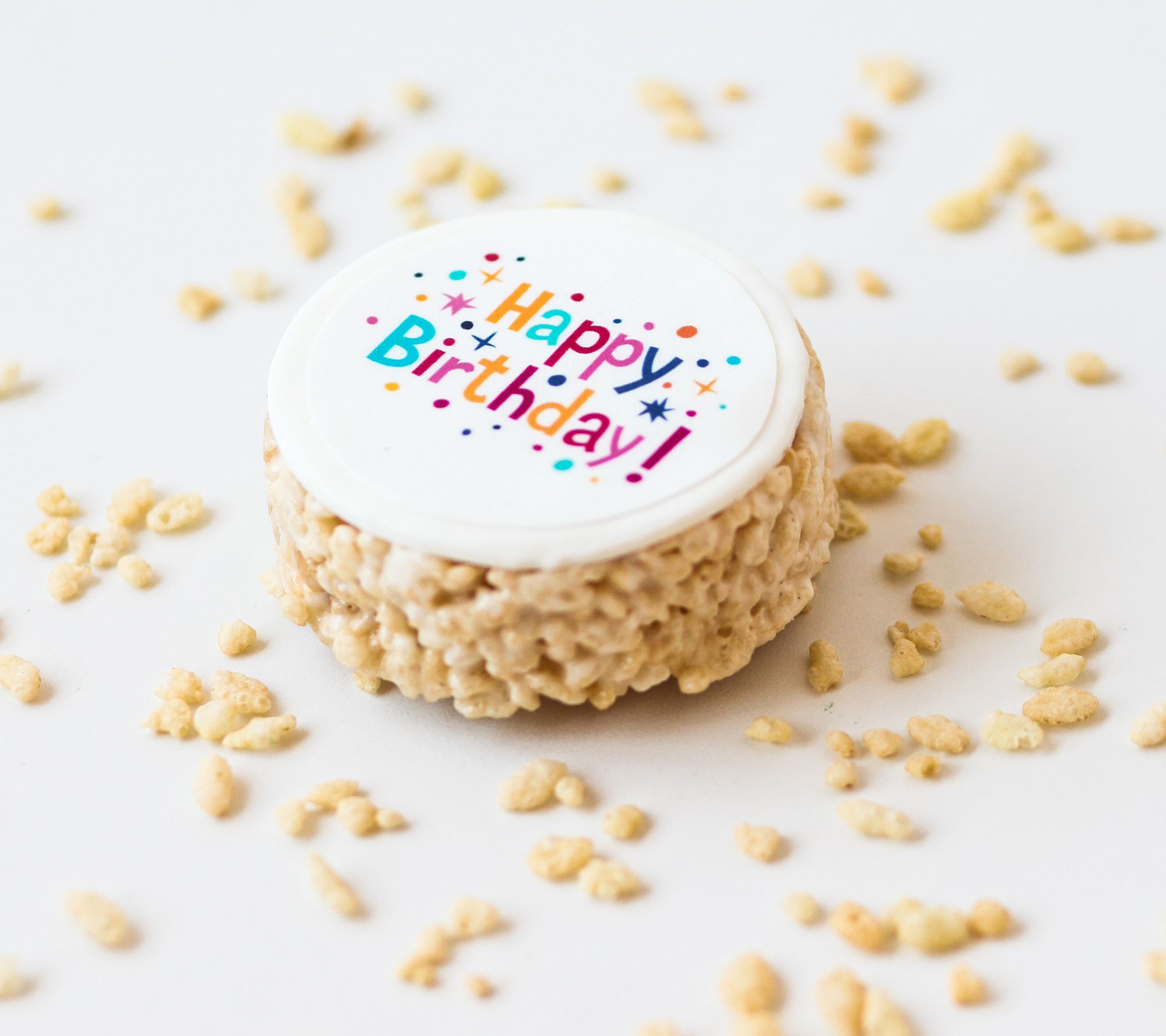 A perfect alternative for your fun celebration, these 12 sweet and chewy rice crispie birthday treats add personality and excitement to your party. Plus, they come in a decorative gift basket. From Creative Crispies.