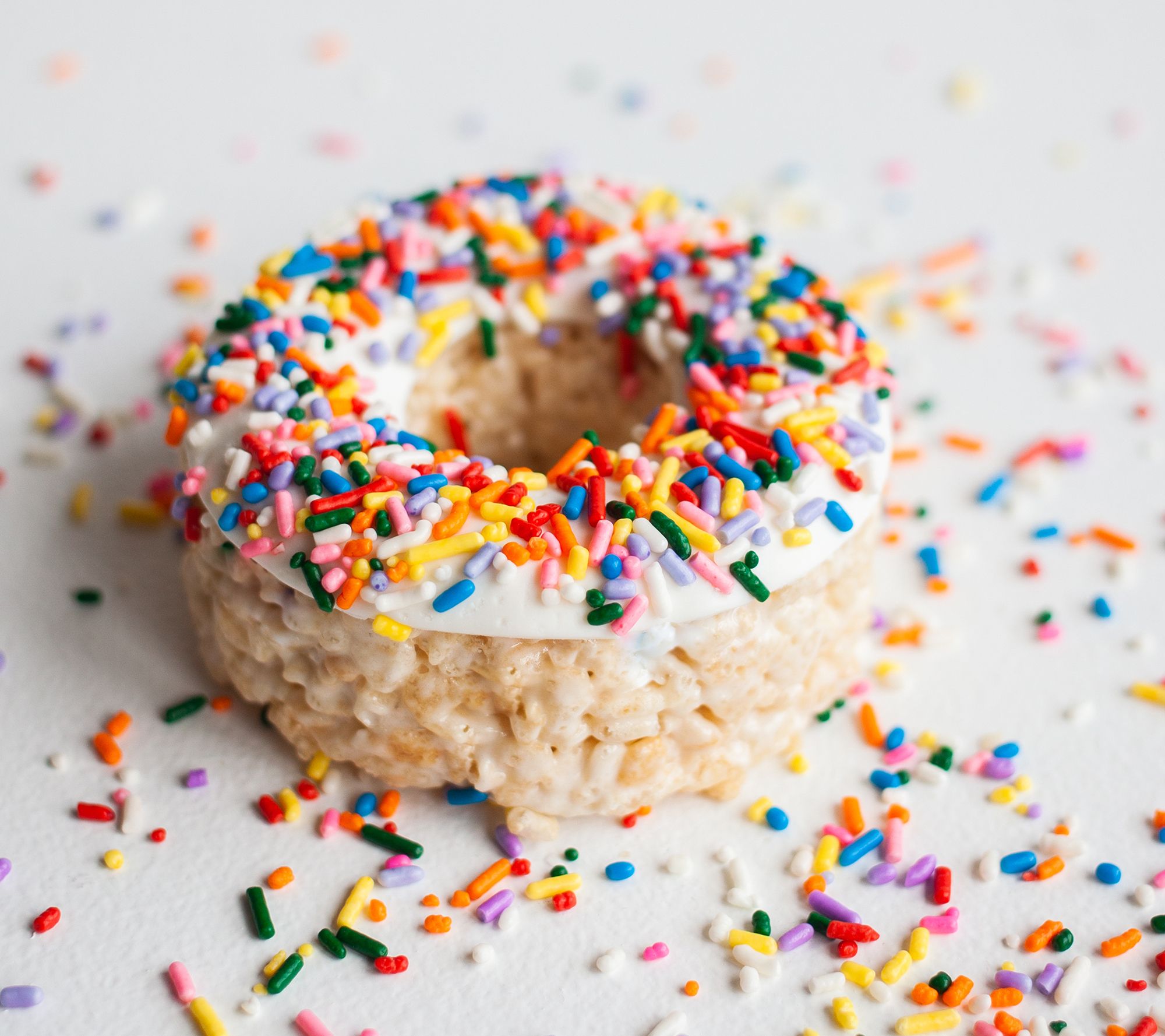 • Includes 12 donut-shaped rice crispie treats topped with fondant and rainbow sprinkles
