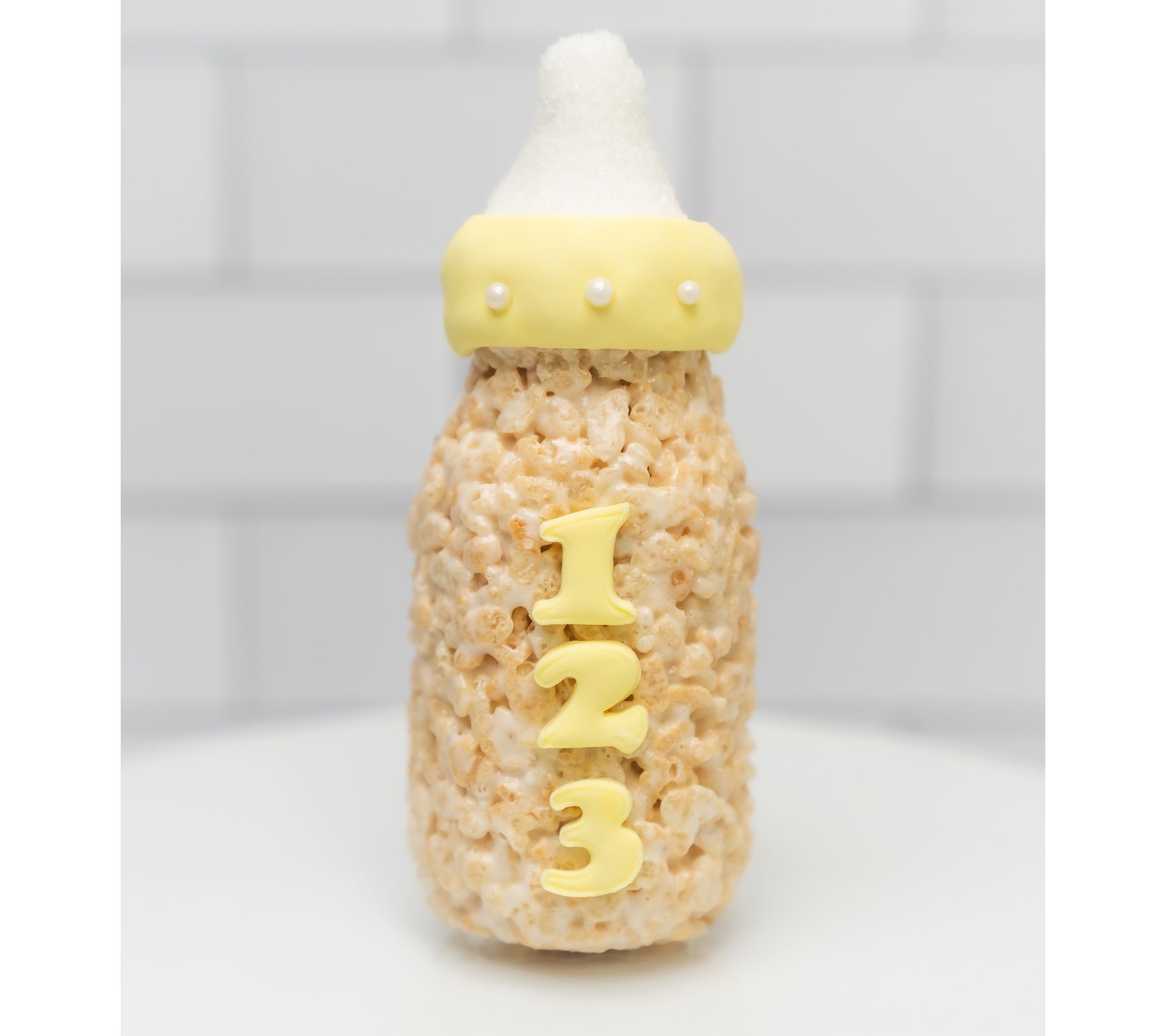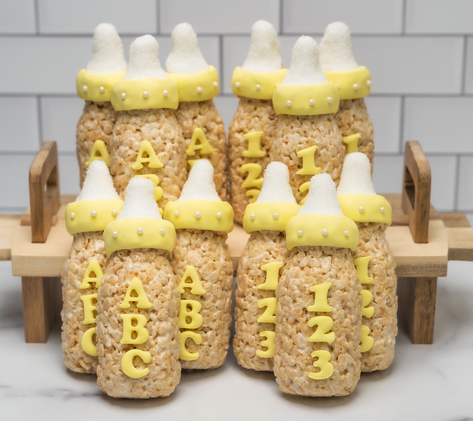• Includes 12 2-oz yellow baby bottle rice crispie treats