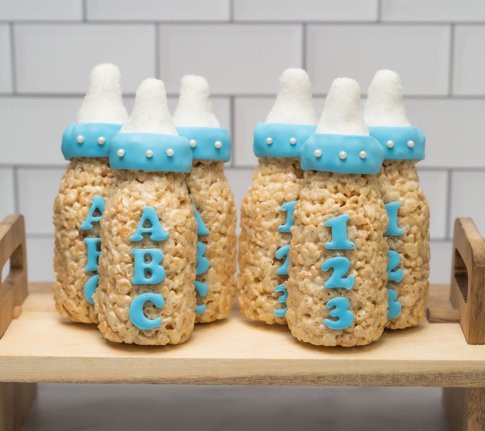 • Includes six 2-oz blue baby bottle rice crispie treats
